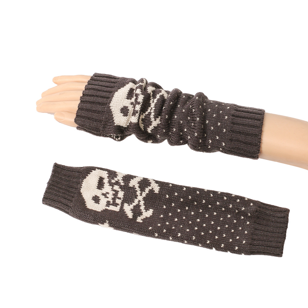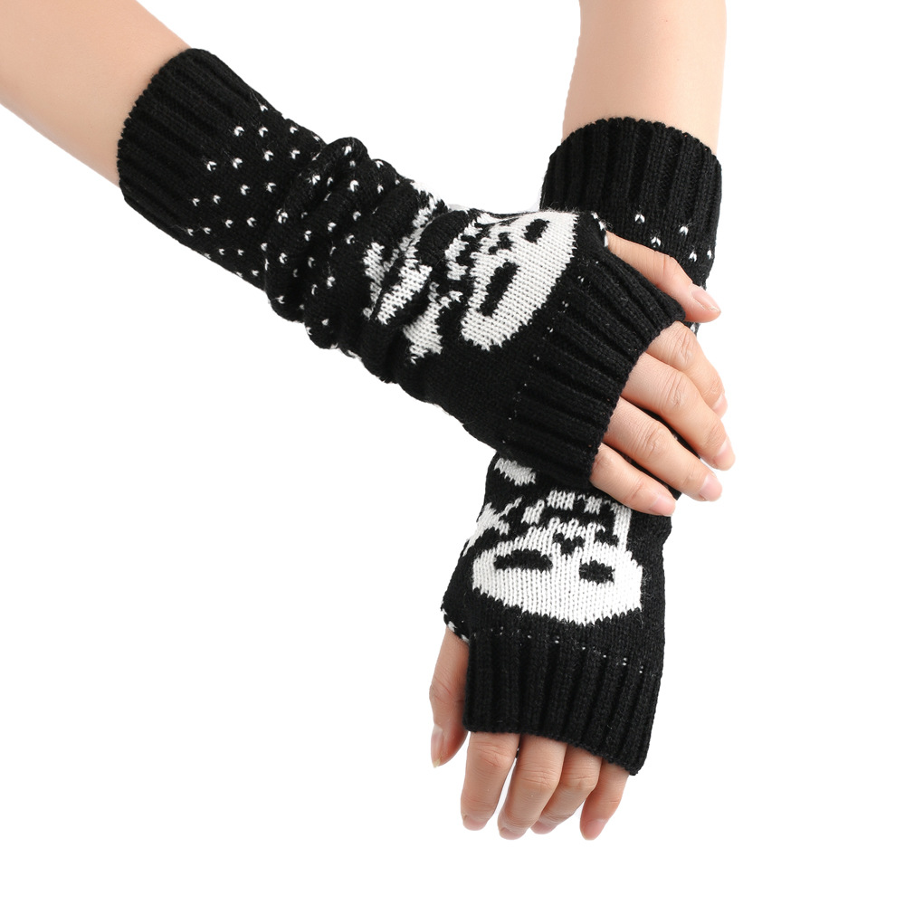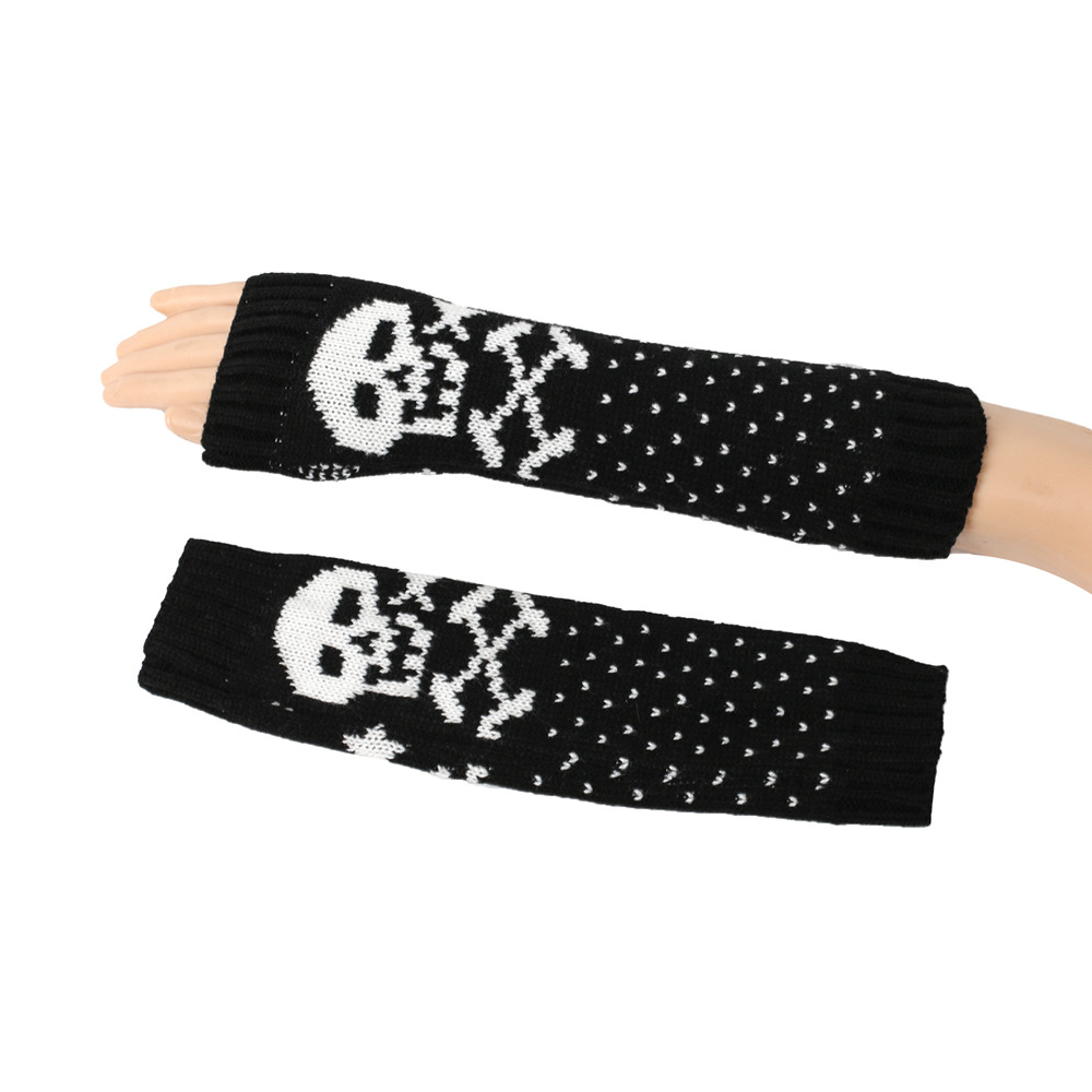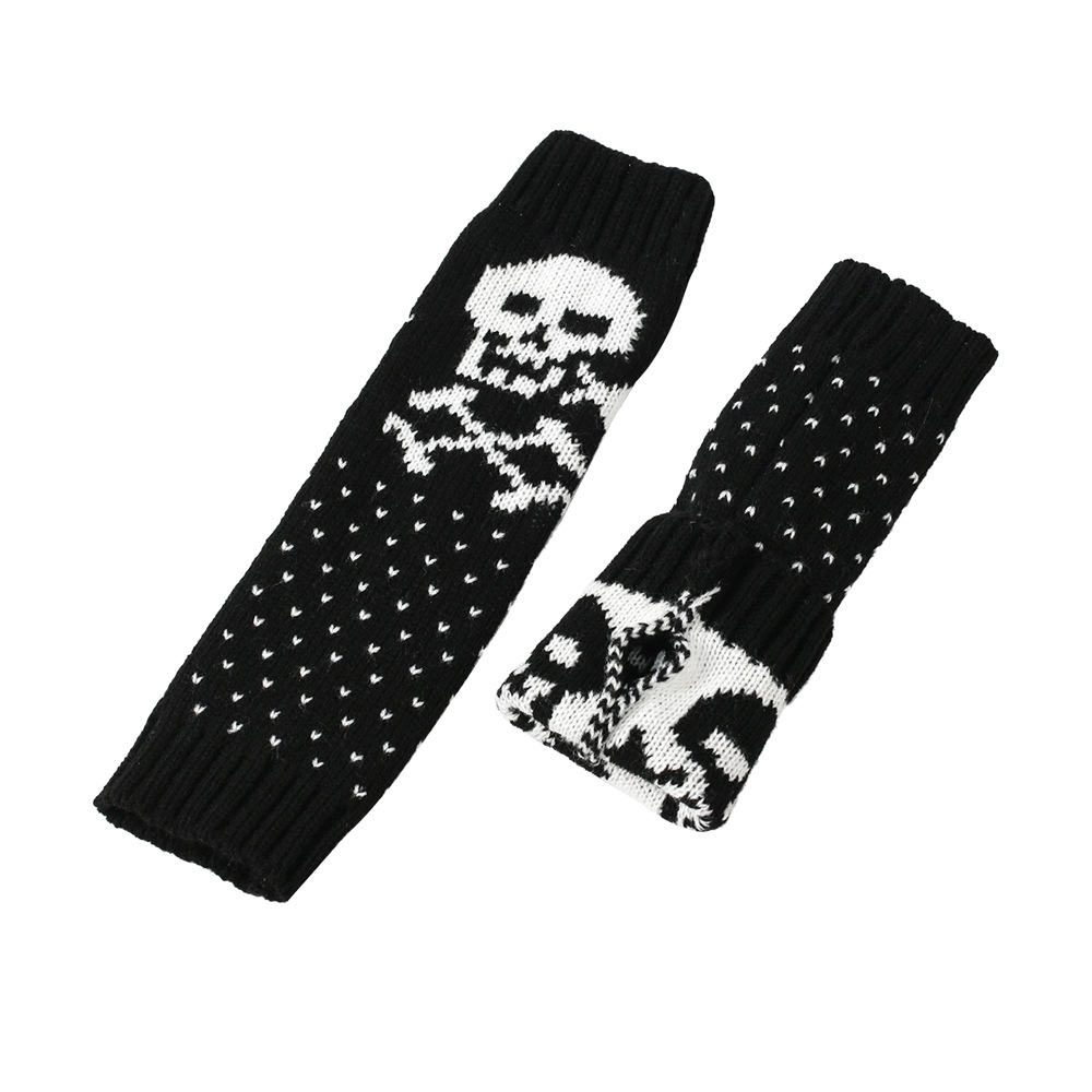 국경 간 해골 울 장갑 아크릴 니트 손가락없는 가짜 소매 유령 머리, 유럽과 미국의 따뜻한 긴 장갑