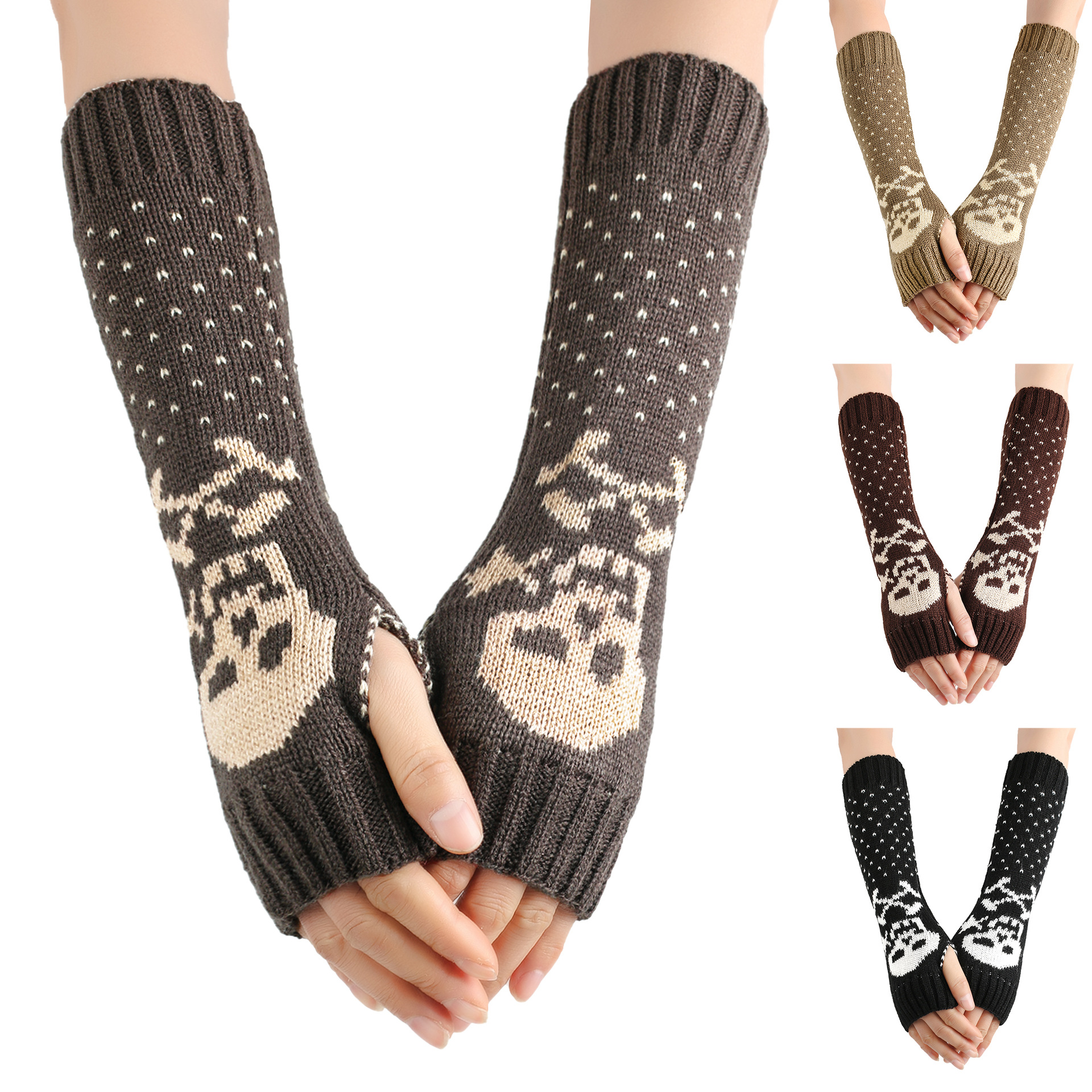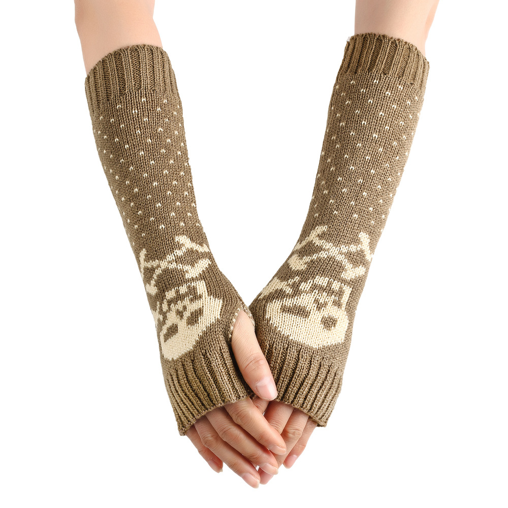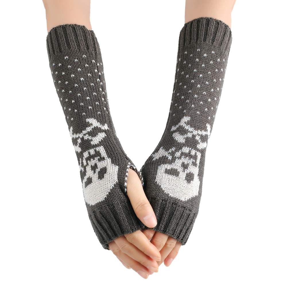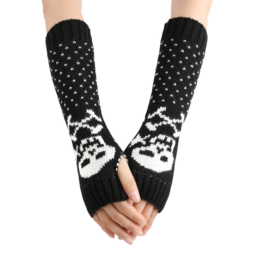 국경 간 해골 울 장갑 아크릴 니트 손가락없는 가짜 소매 유령 머리, 유럽과 미국의 따뜻한 긴 장갑