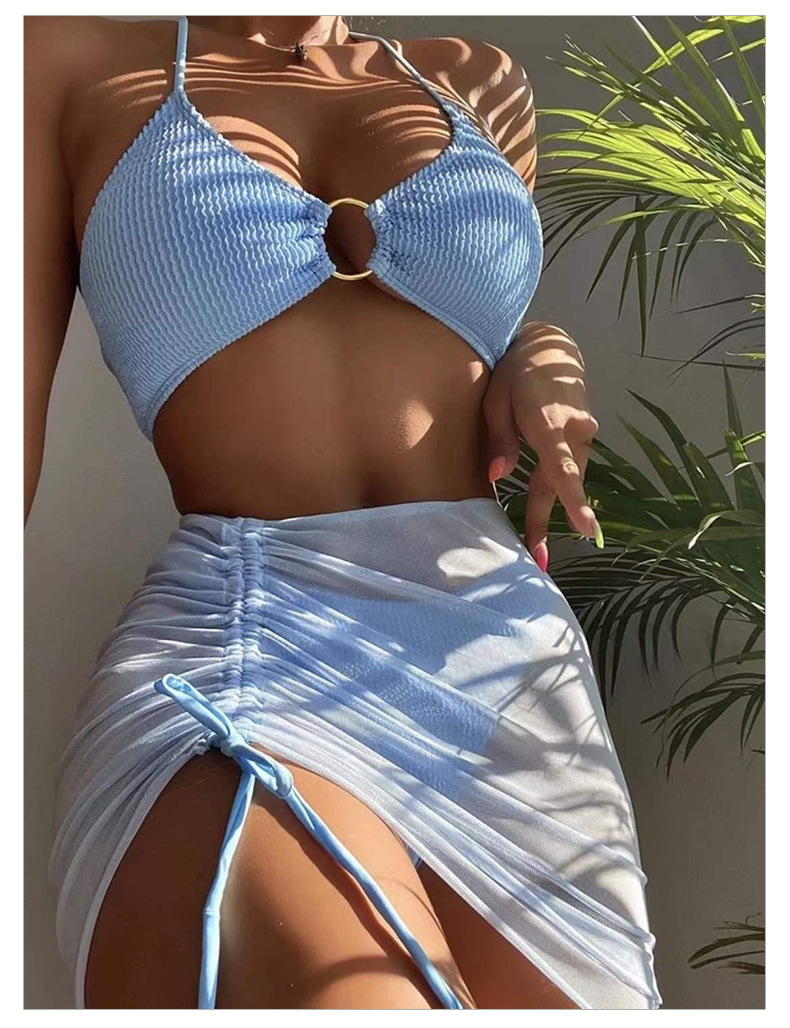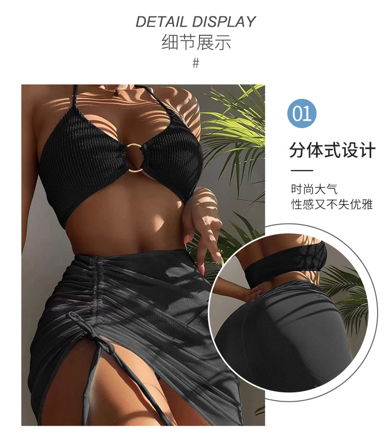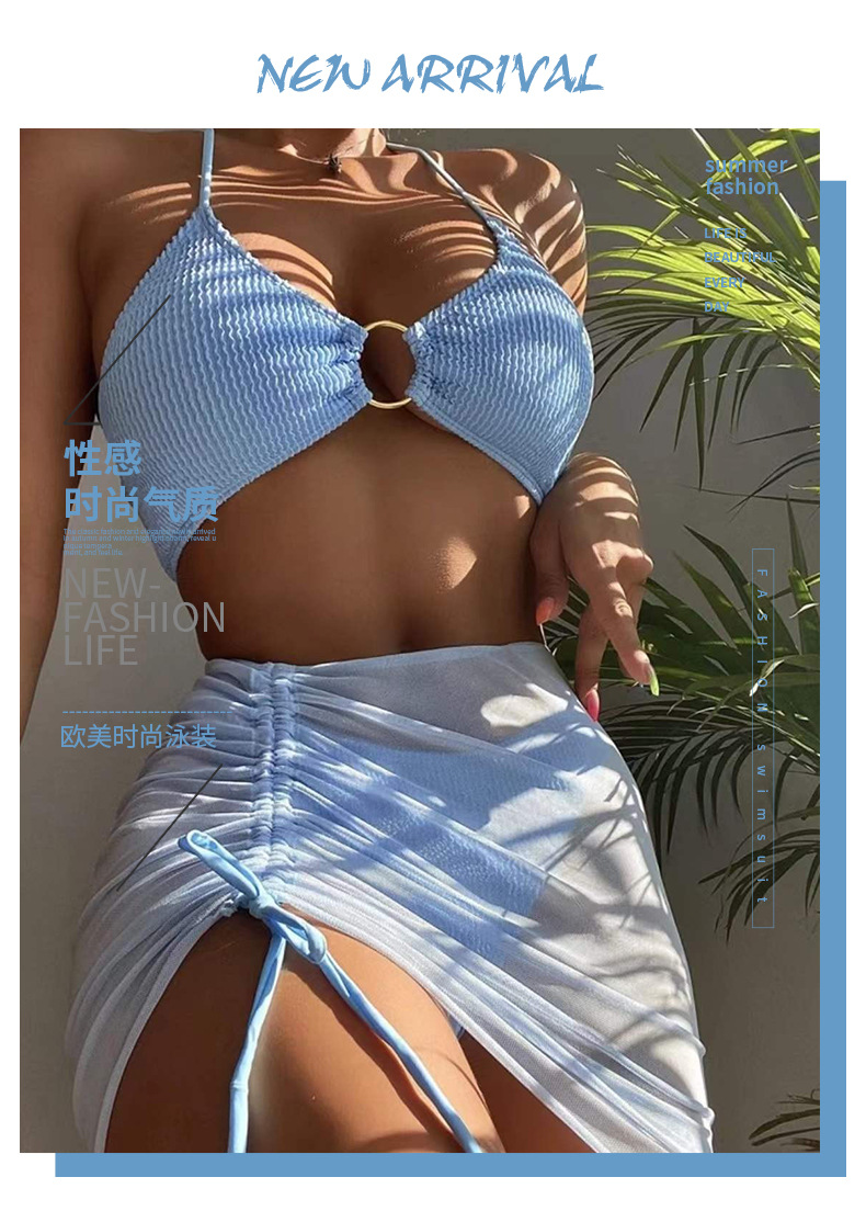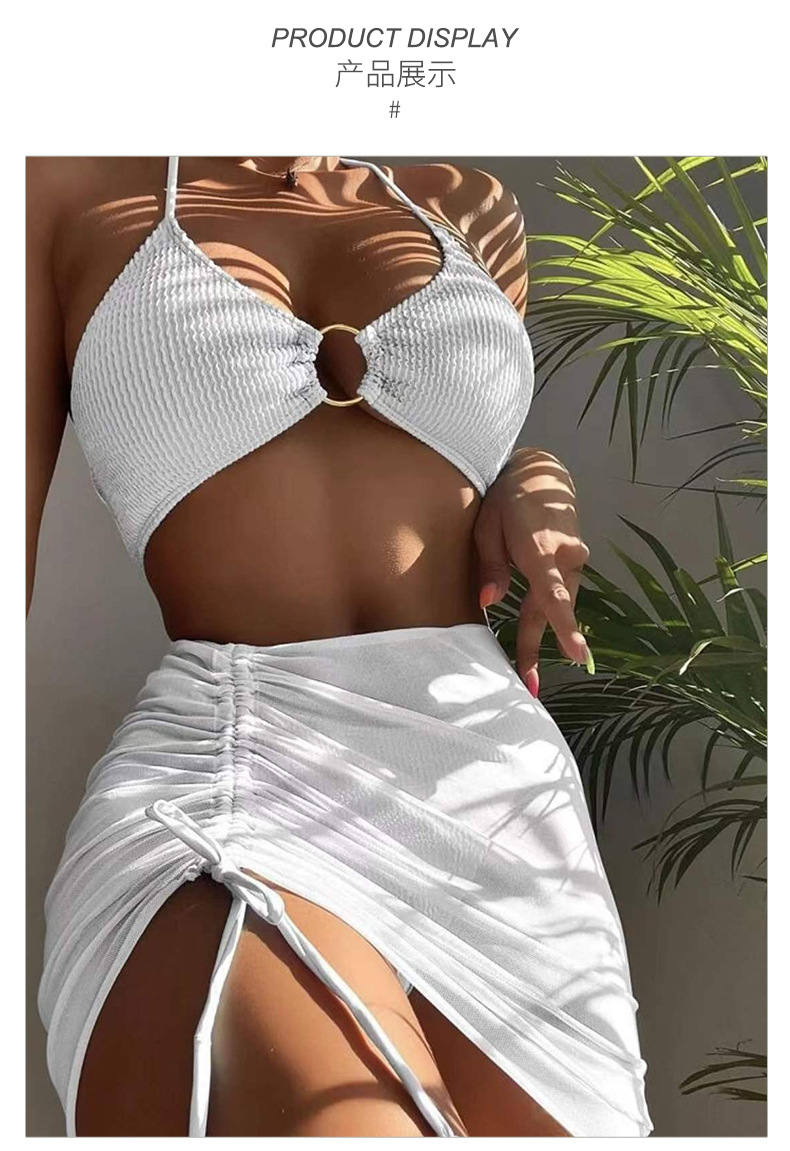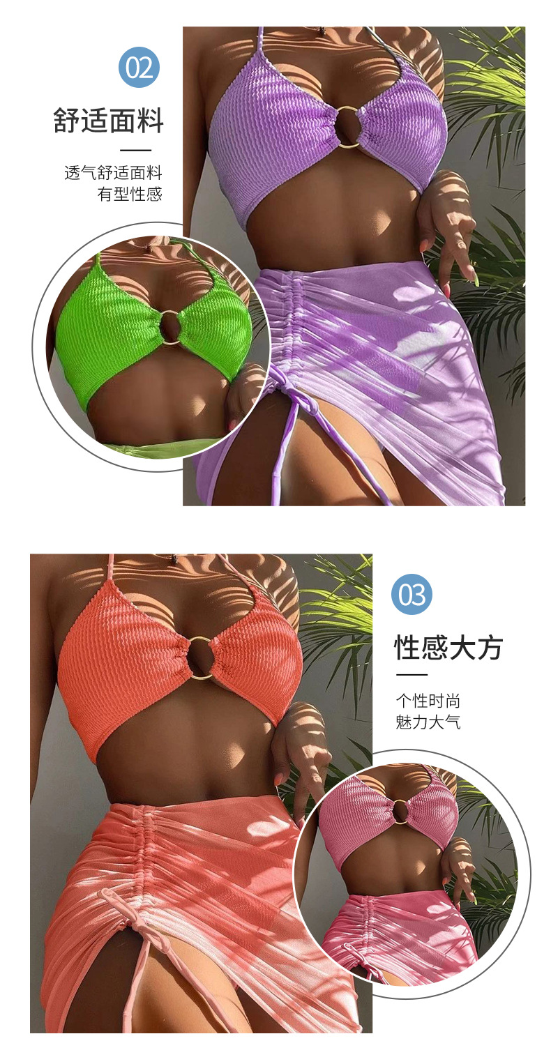 유럽과 미국의 스틸 링 비키니 크로스 보더 아마존 인기 3 피스 세트 스플릿 비키니 2024 주름 여성 수영복