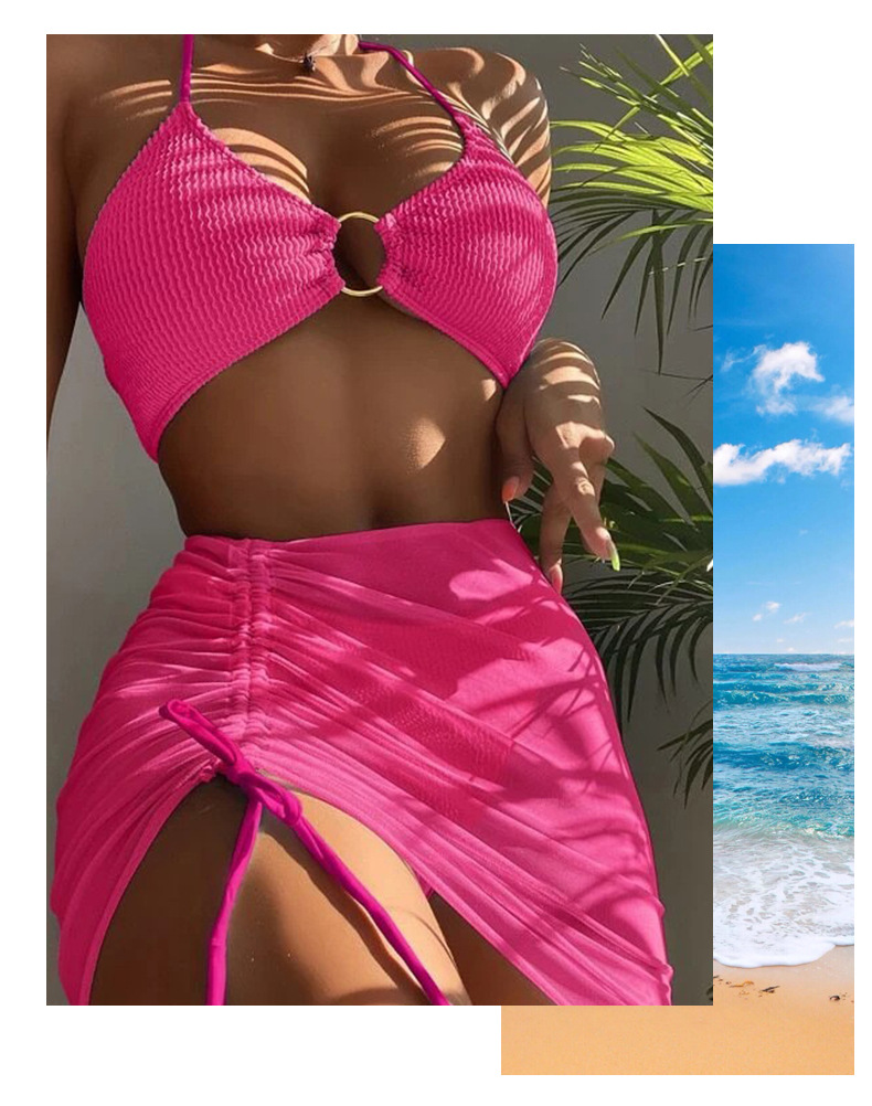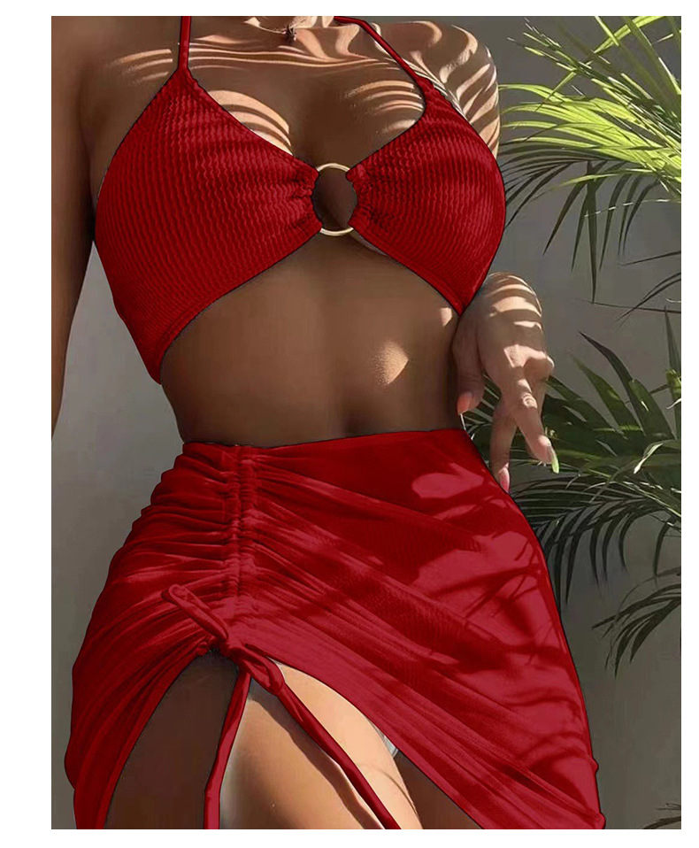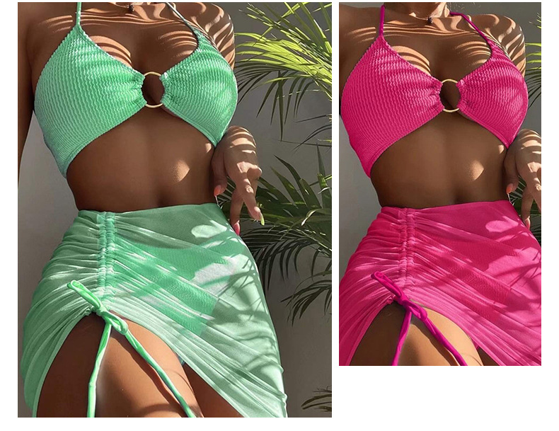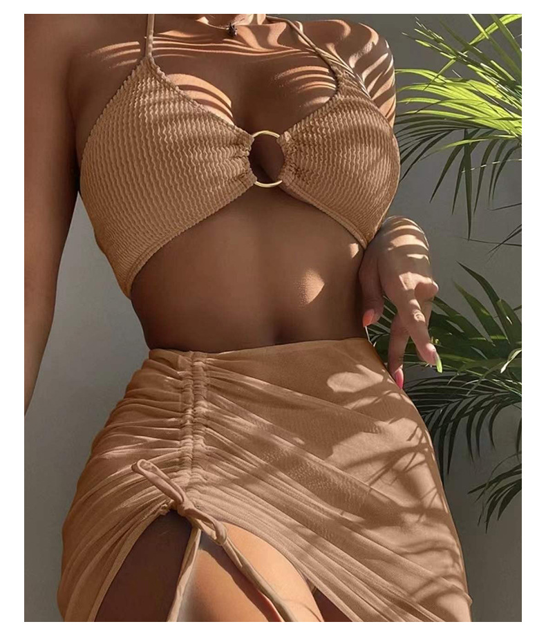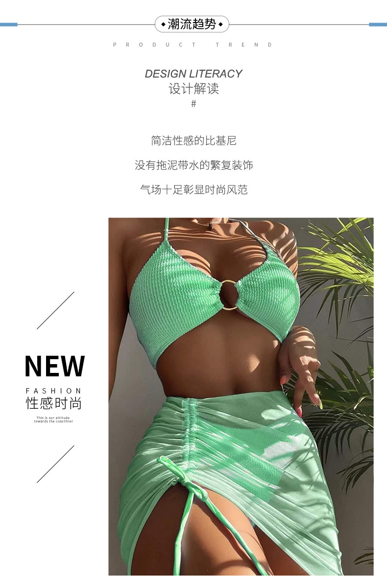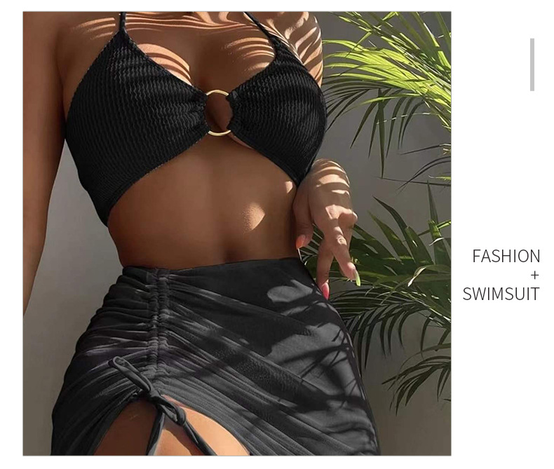 유럽과 미국의 스틸 링 비키니 크로스 보더 아마존 인기 3 피스 세트 스플릿 비키니 2024 주름 여성 수영복