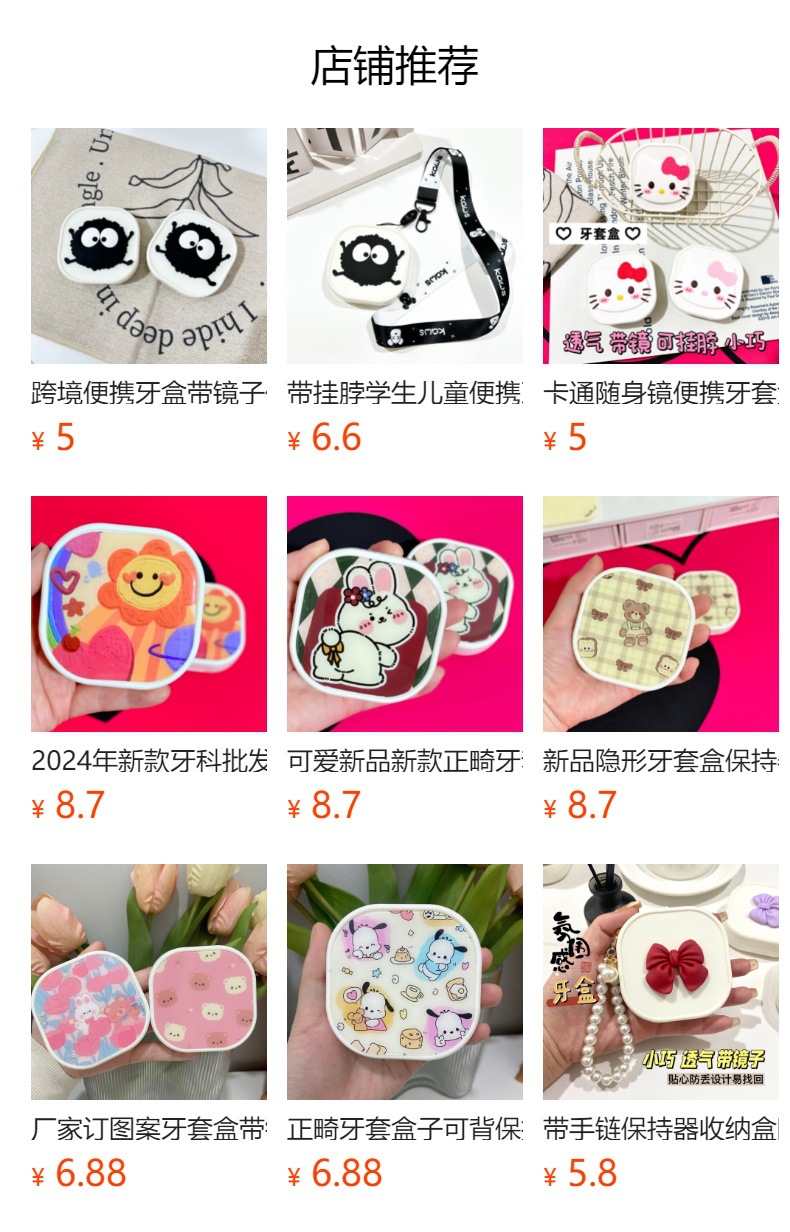 통기성 구멍 공장 도매와 거울 휴대용 의치 저장 상자가있는 만화 높은 보이는 보이지 않는 버팀대 상자스토어 가기