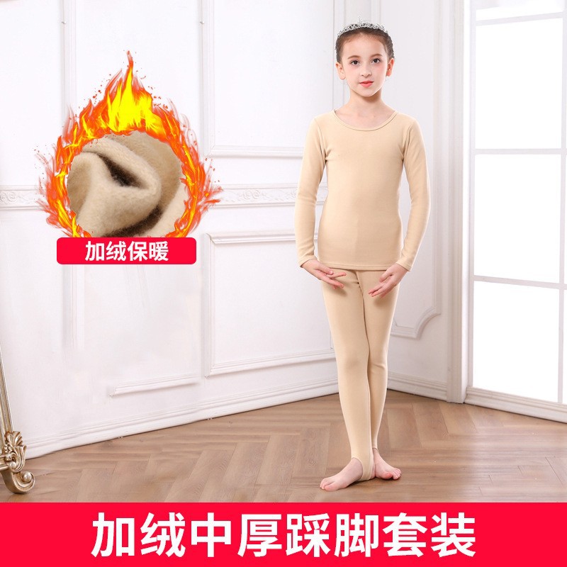 따뜻한 옷 어린이 드 벨벳 살색 바닥 셔츠 소녀의 원활한 긴팔 가을 옷 긴 바지 소녀의 가을과 겨울 속옷 세트