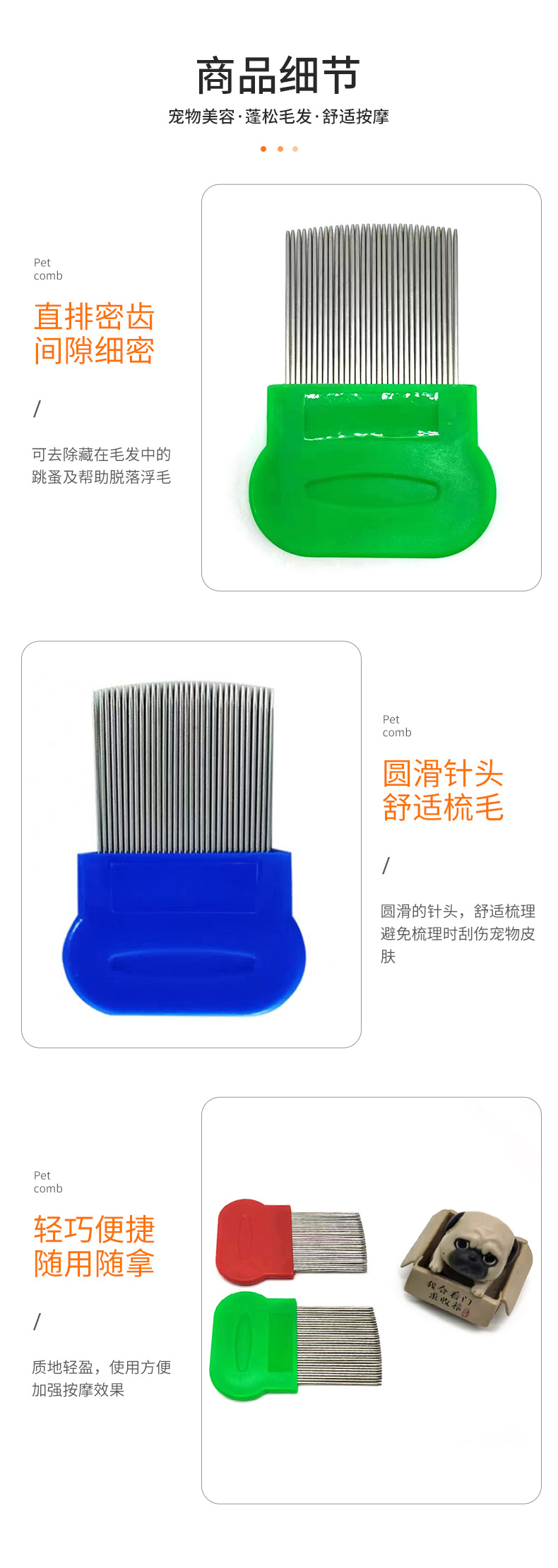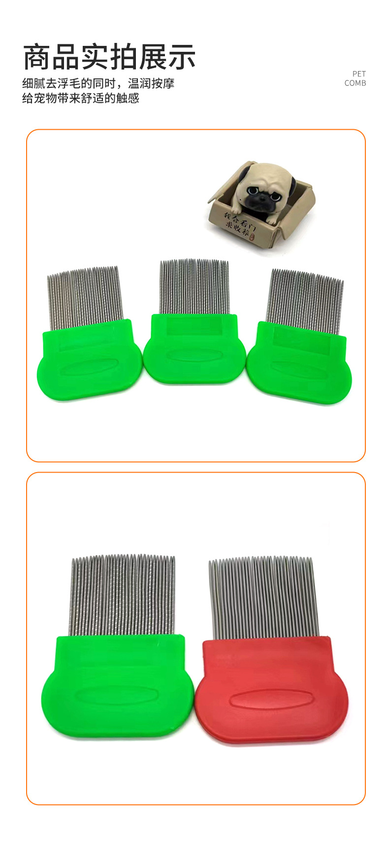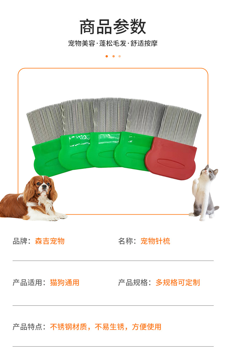 애완 동물 고양이와 개 스테인리스 바늘 빗 입 머리 빗 애완 동물 조밀 한 치아 빗 고양이 조밀 한 빗 벼룩 강철 빗스토어 가기
