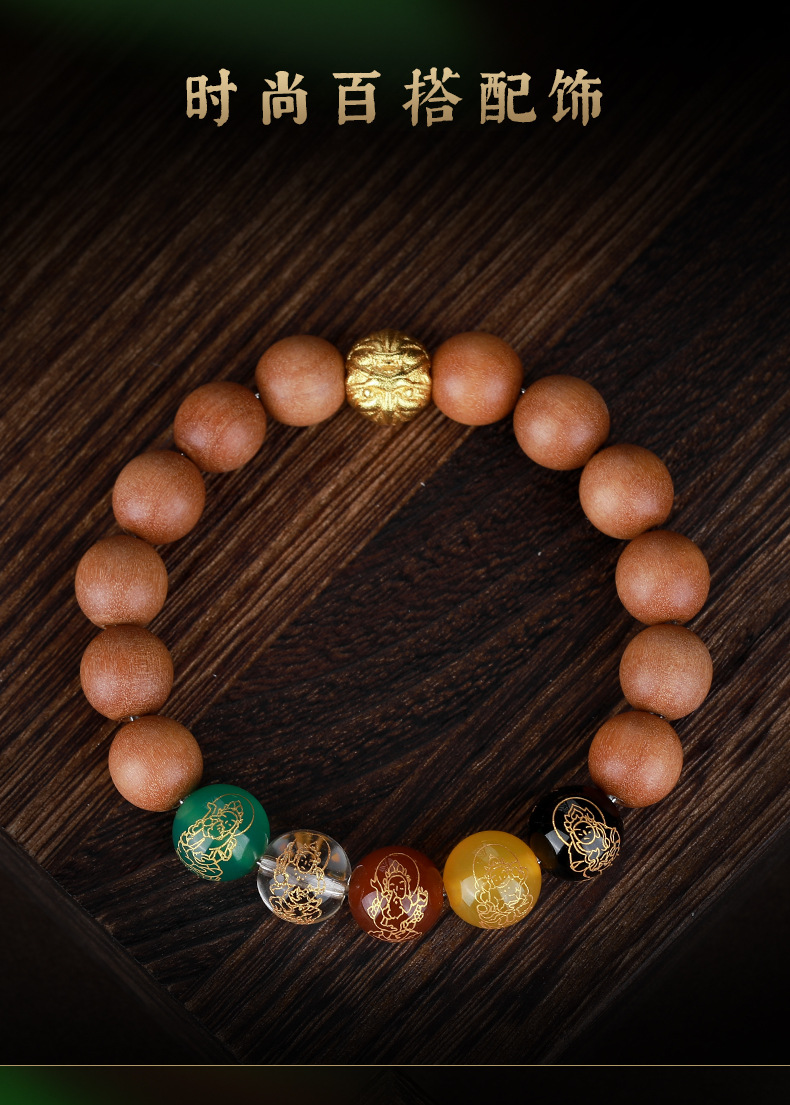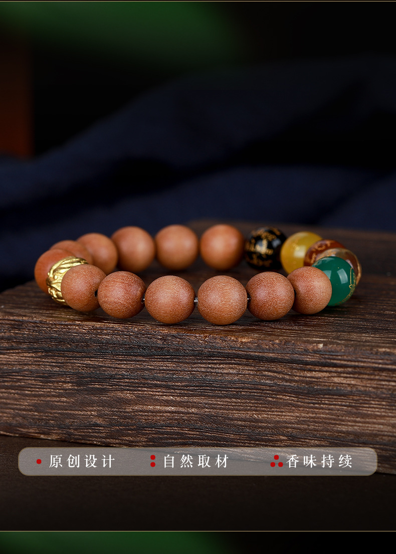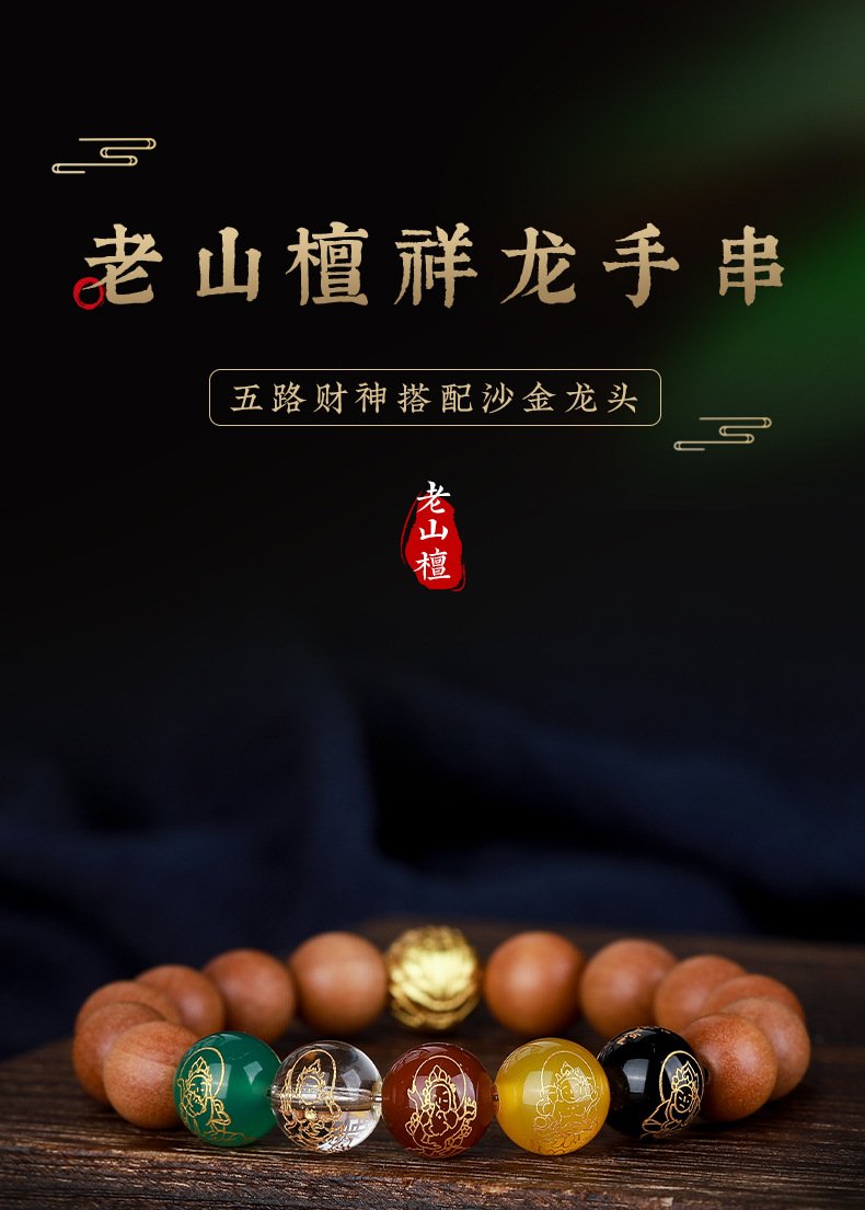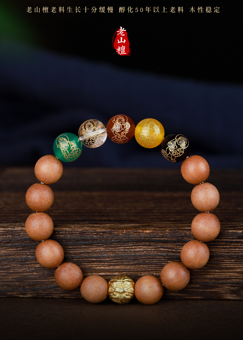 • 라오산 샌달 우드 5 방향 부의 신 팔찌 [12mm]