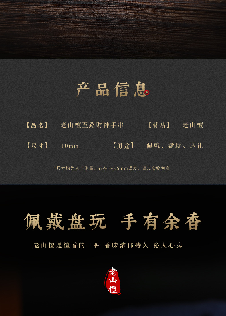 • 라오산 샌달 우드 5 방향 부의 신 팔찌 [10mm]