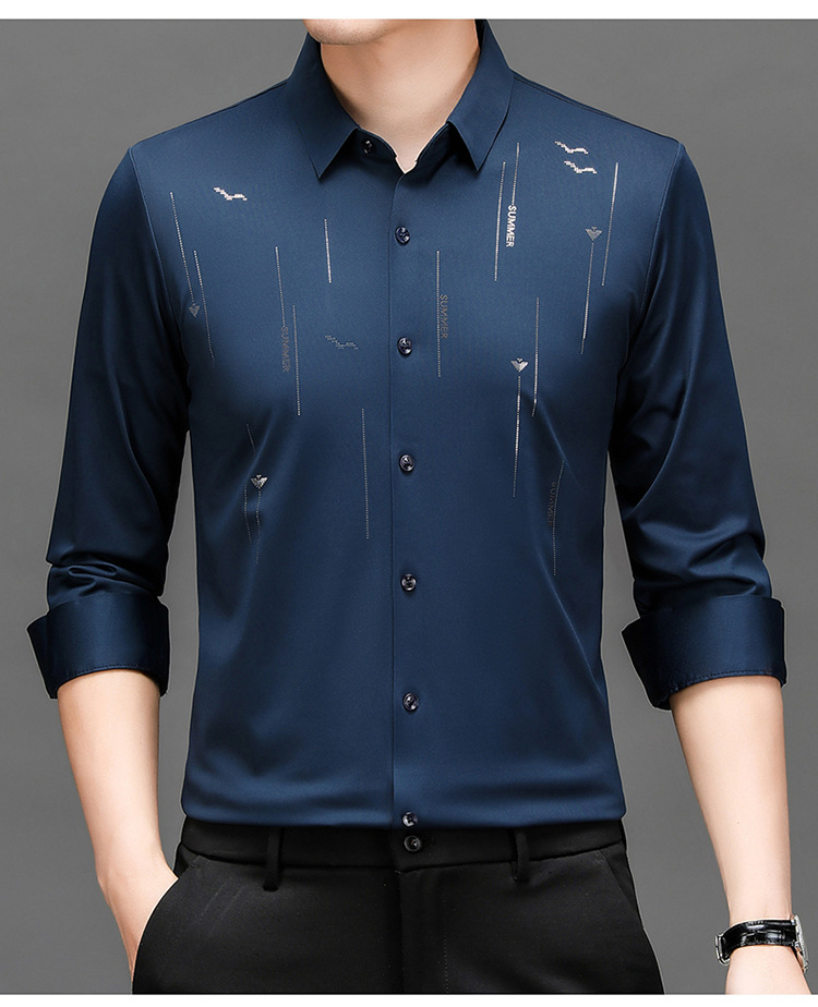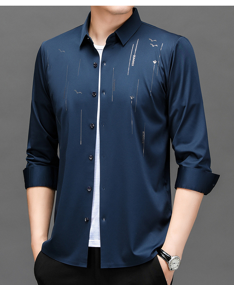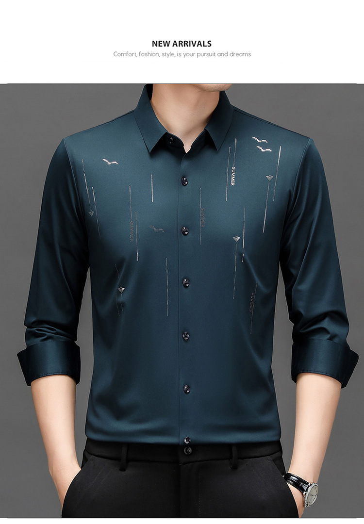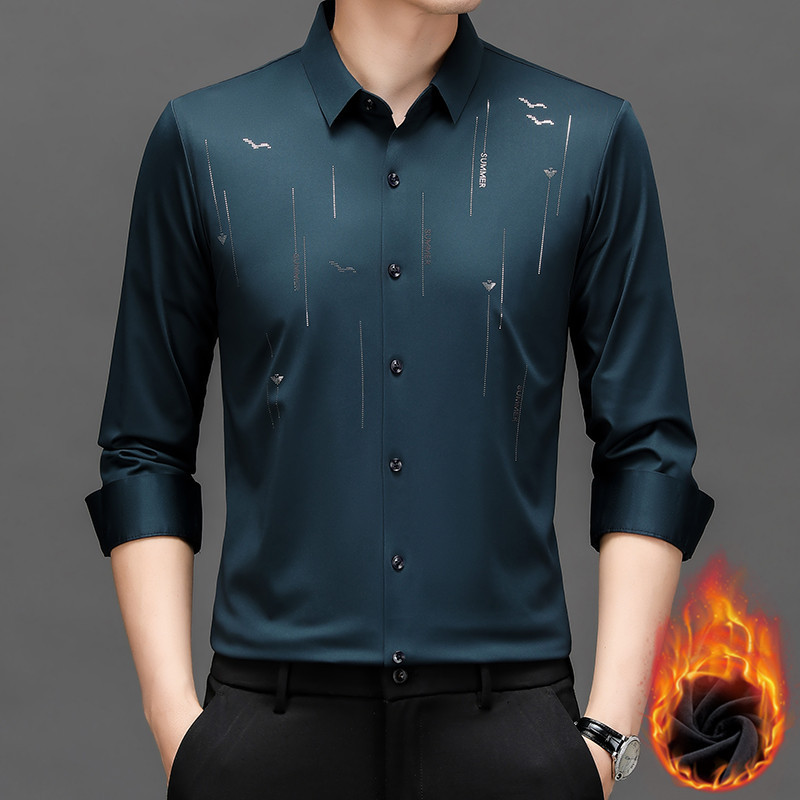 남성용 기모 두꺼운 긴팔 프린트 셔츠 가을과 겨울 뉴 비즈니스 캐주얼 따뜻한 캐주얼 셔츠 남성용