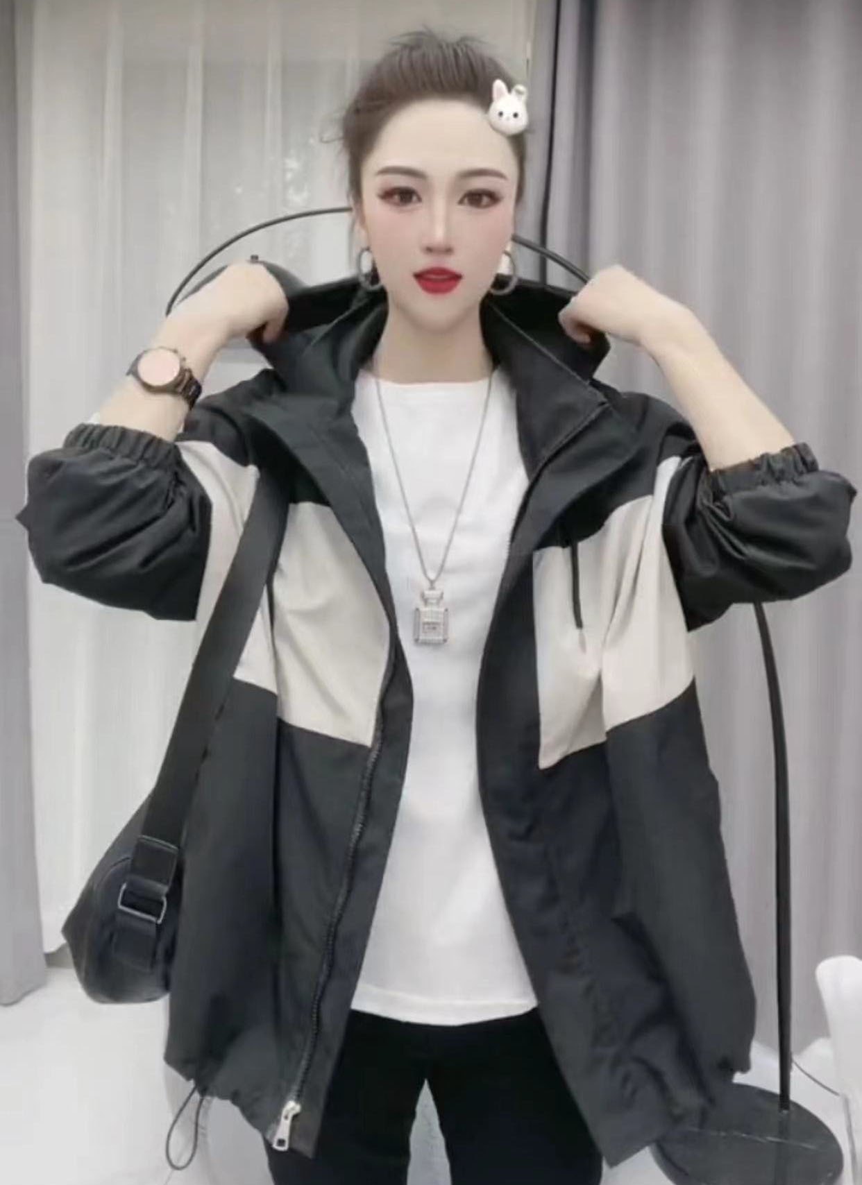 여성용 재킷 봄 가을 2024 유럽 고급 스타일 윈드브레이커 자켓 자외선 차단 후드 대형 사이즈 야구복 코트 상의스토어 가기