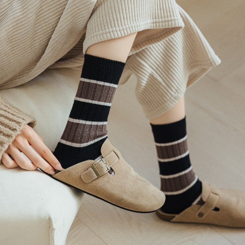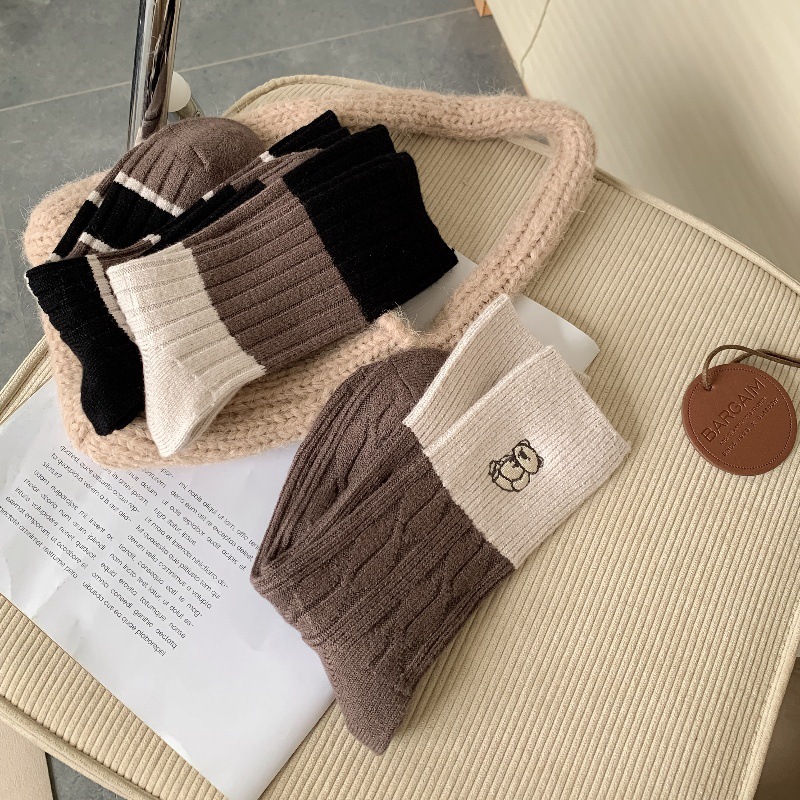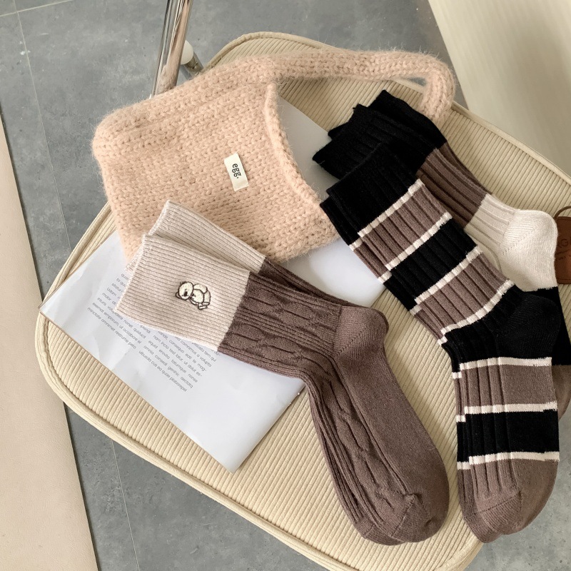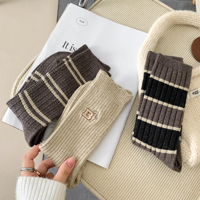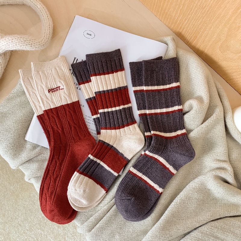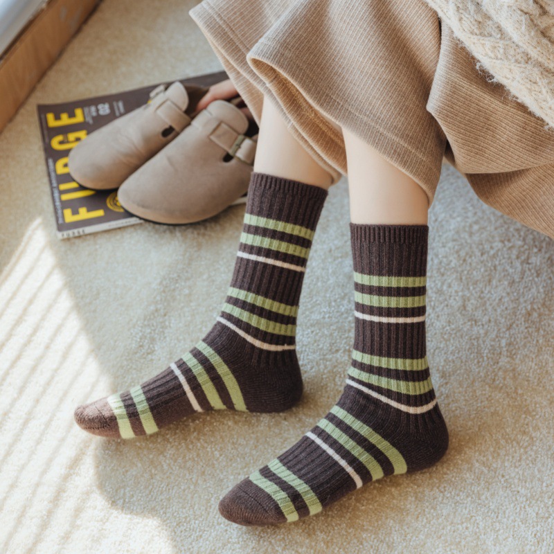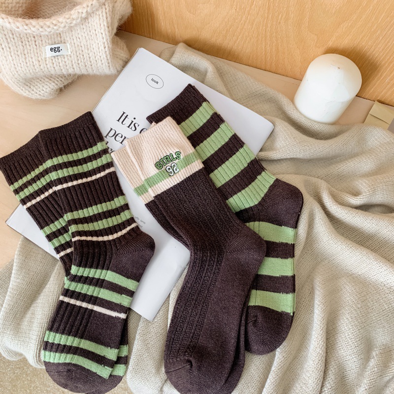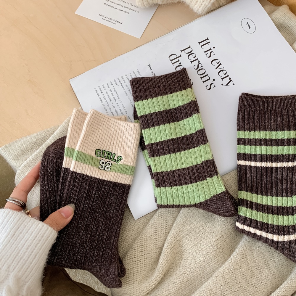 일본 캐시미어 3 색 멀티 시리즈 조합 파일 양말 스트라이프 자수 복고풍 과일 녹색 따뜻한 두꺼운 중간 종아리 양말스토어 가기