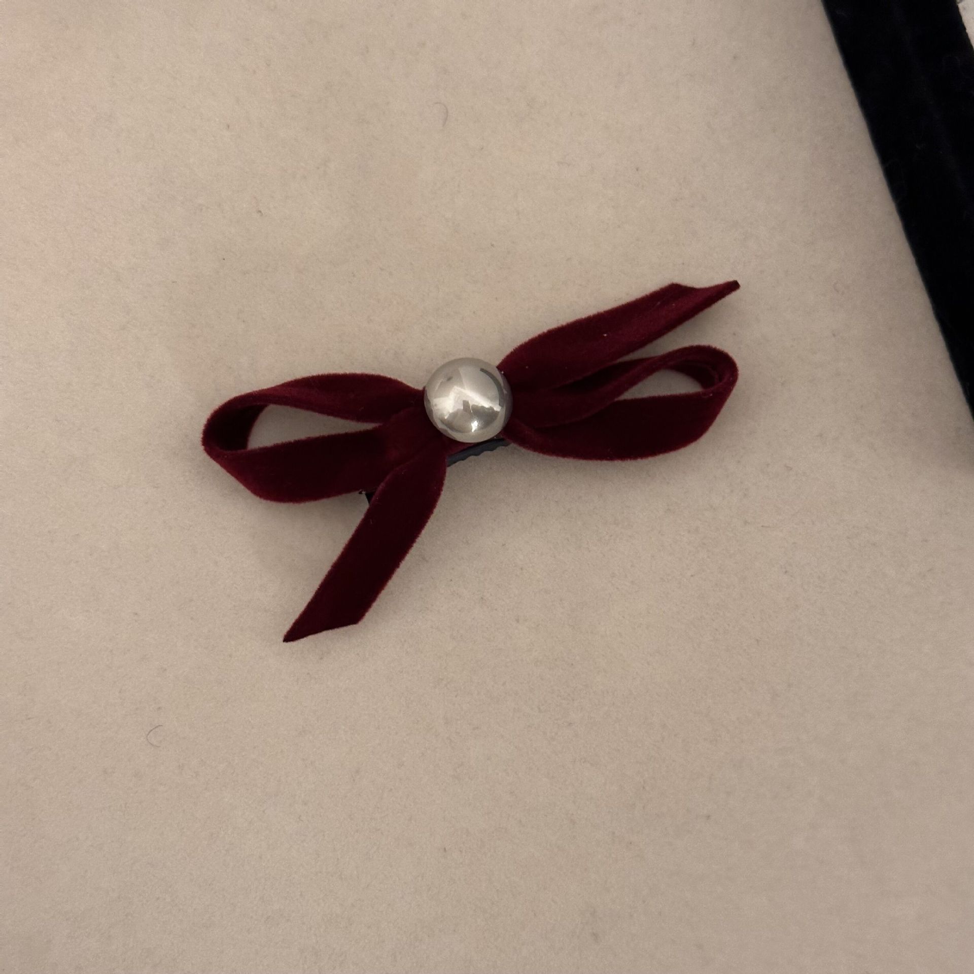 레드 벨벳 진주 헤어 클립 나비 머리핀 여성 가을과 겨울 덕빌 클립 2023 새로운 우아한 클립 머리 장식스토어 가기