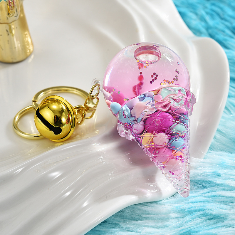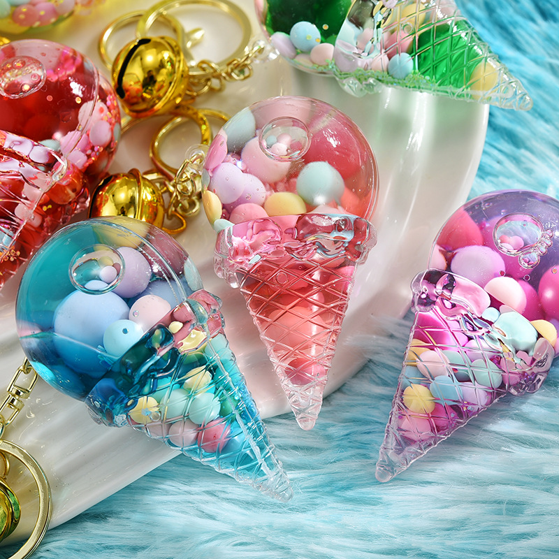 아크릴 빛나는 기름 설탕 콩 아이스크림 키 체인 자동차 펜던트 플로팅 퀵 샌드 커플 가방 키 체인