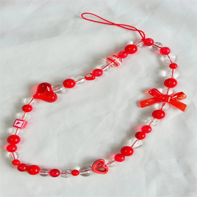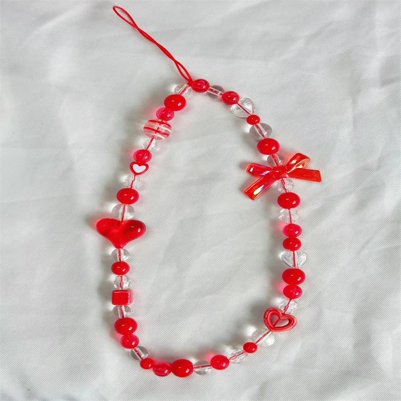 틈새 밀레니엄 스타일 y2g 뜨거운 소녀, 구슬 휴대 전화 체인 새해 붉은 출생 년 짧은 끈 손목 장식