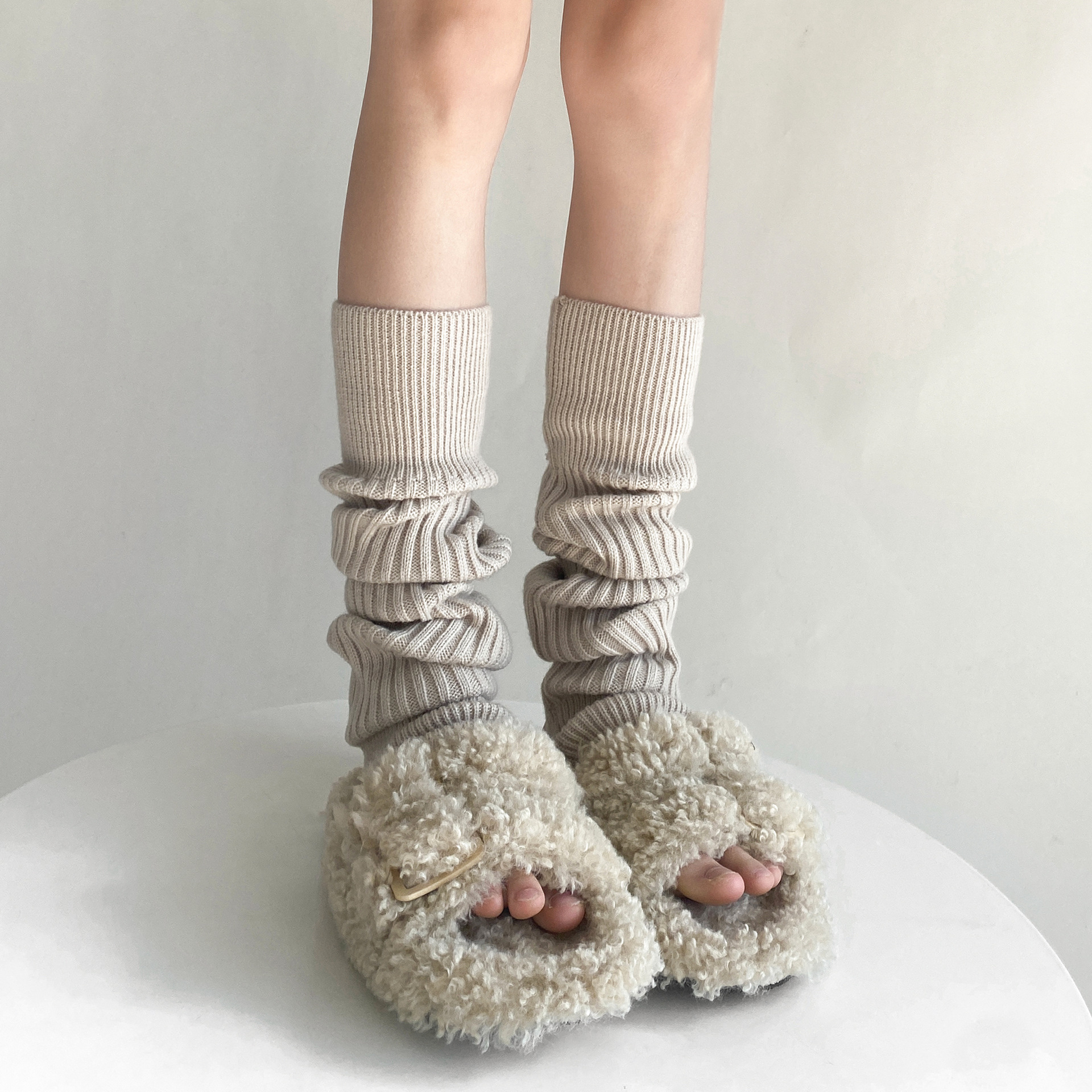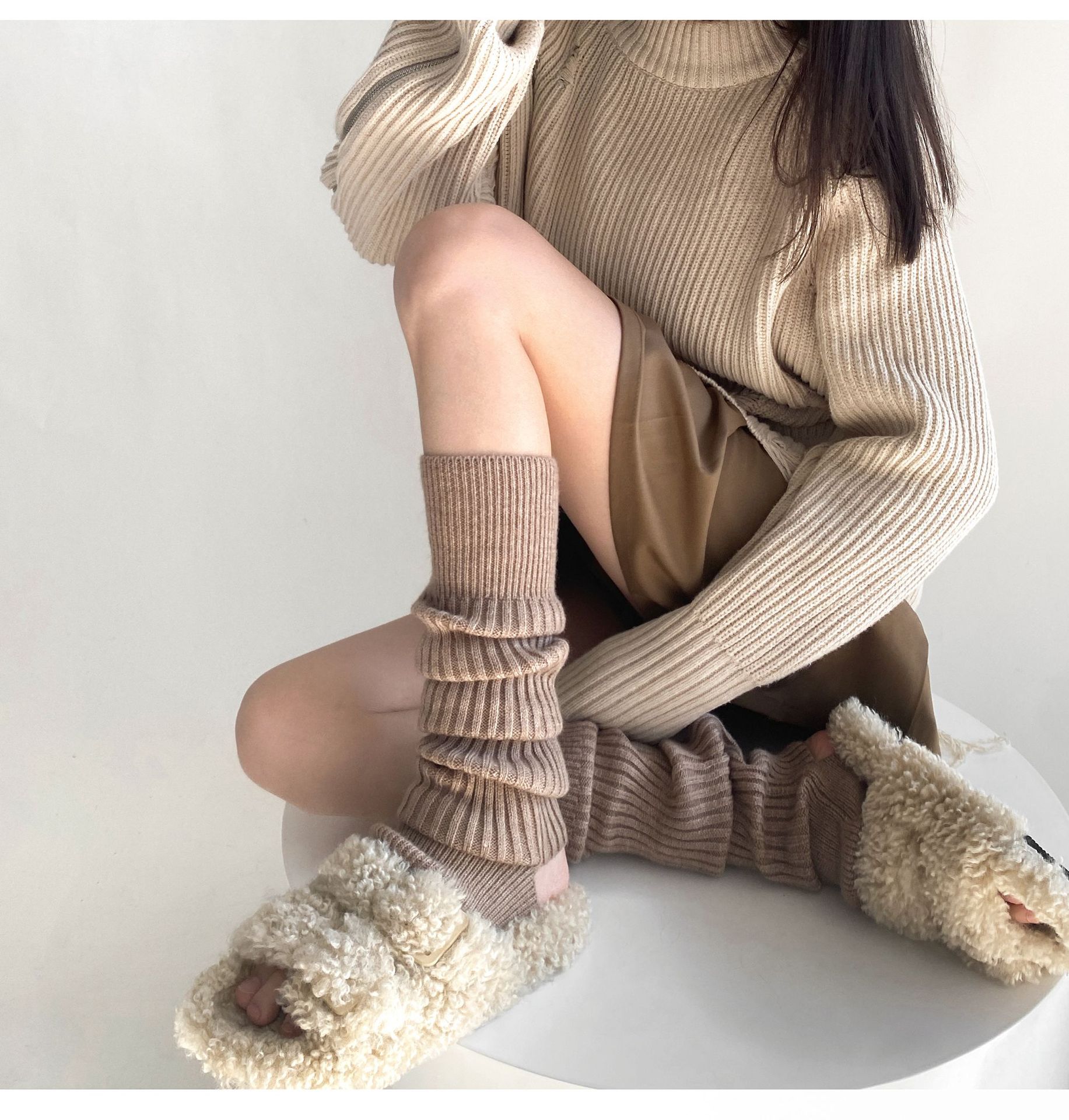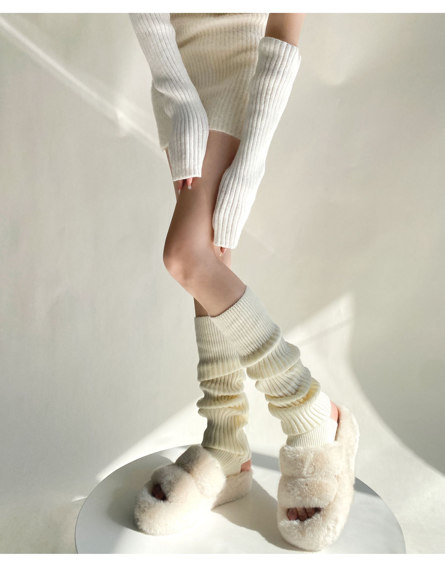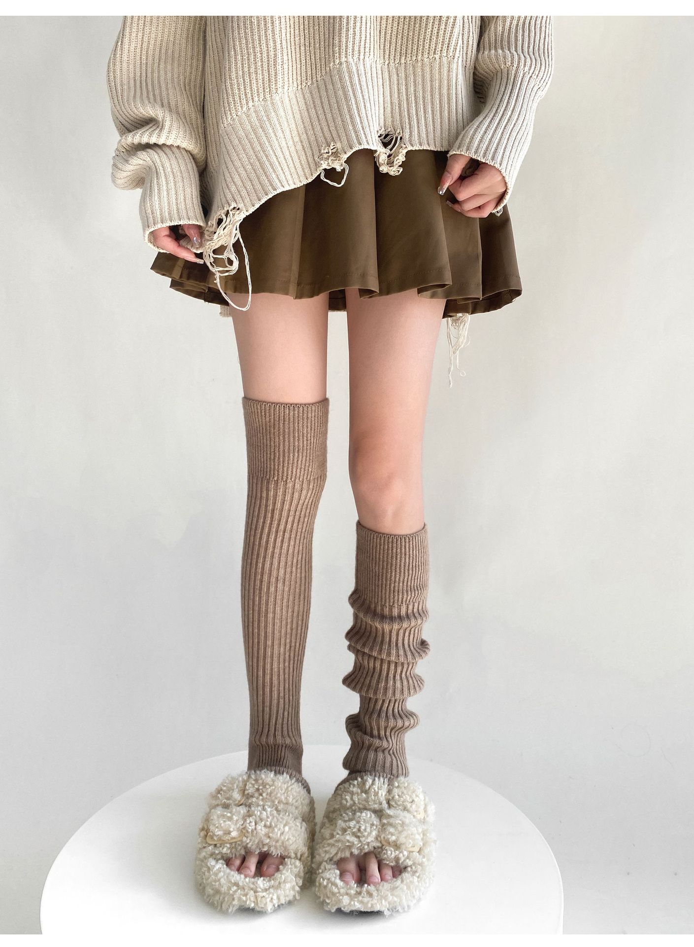 가을과 겨울 솔리드 컬러 마일러 스타일 발 양말 세트 간단한 올 매치 힙 다리 세트 무릎 패드 무릎 부츠 세트 따뜻한 발 커버