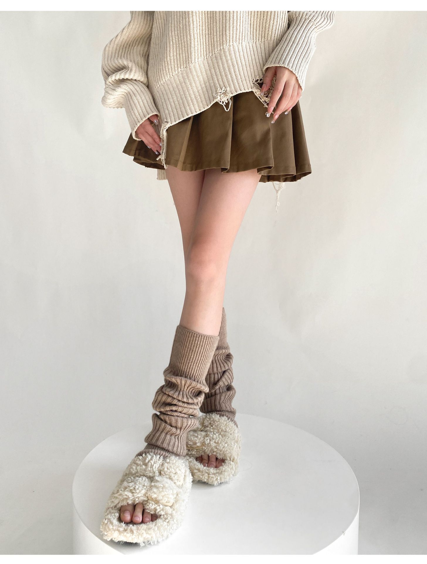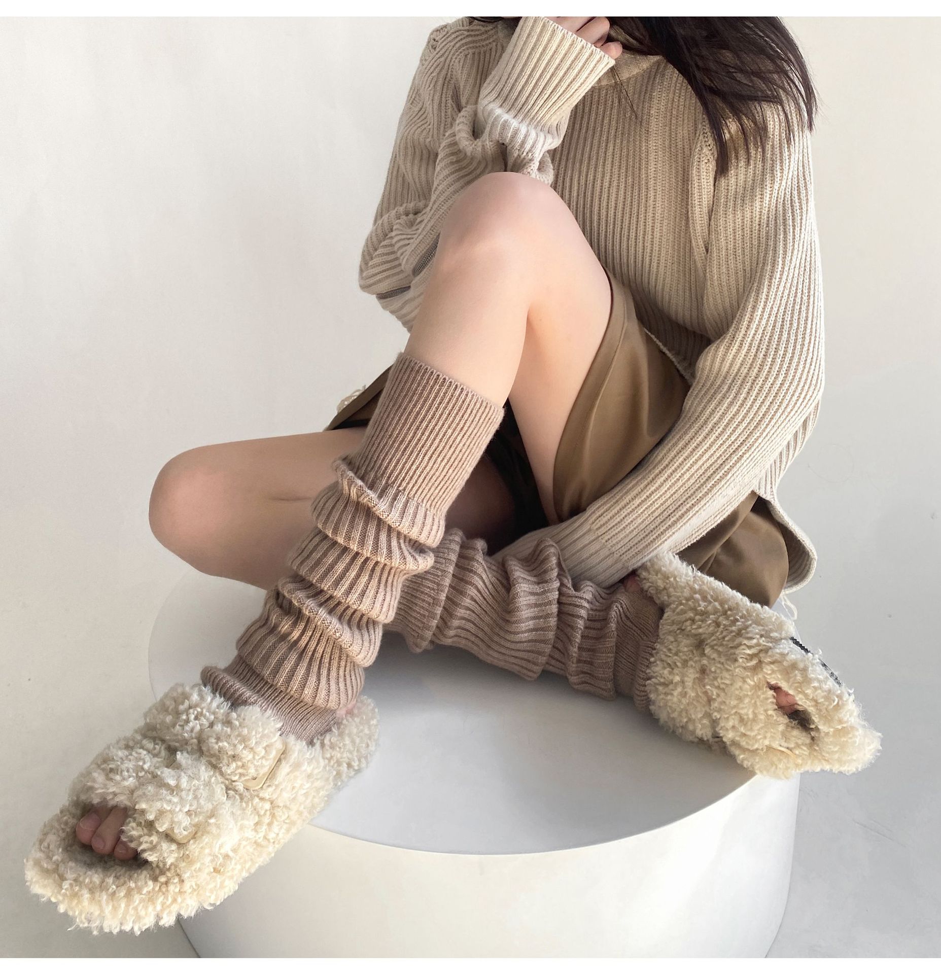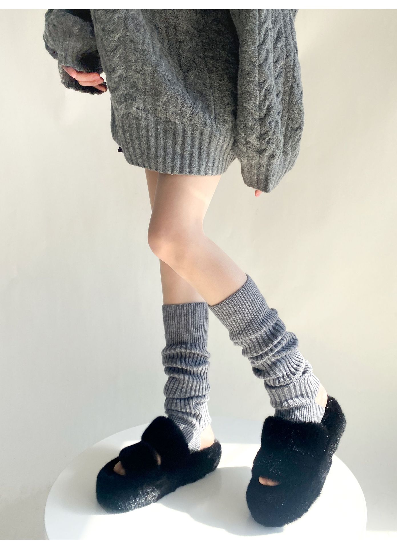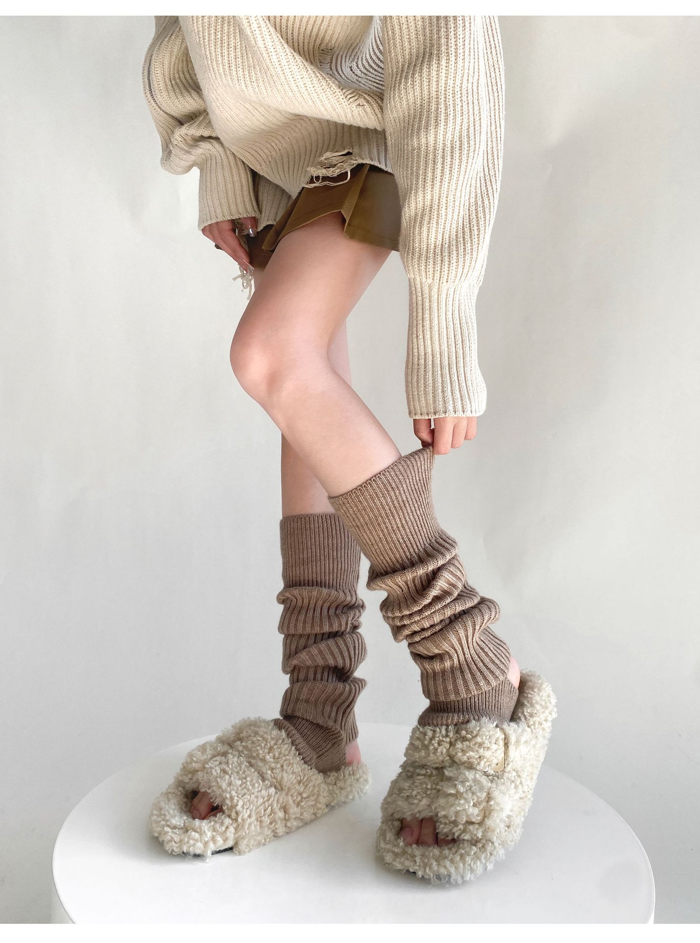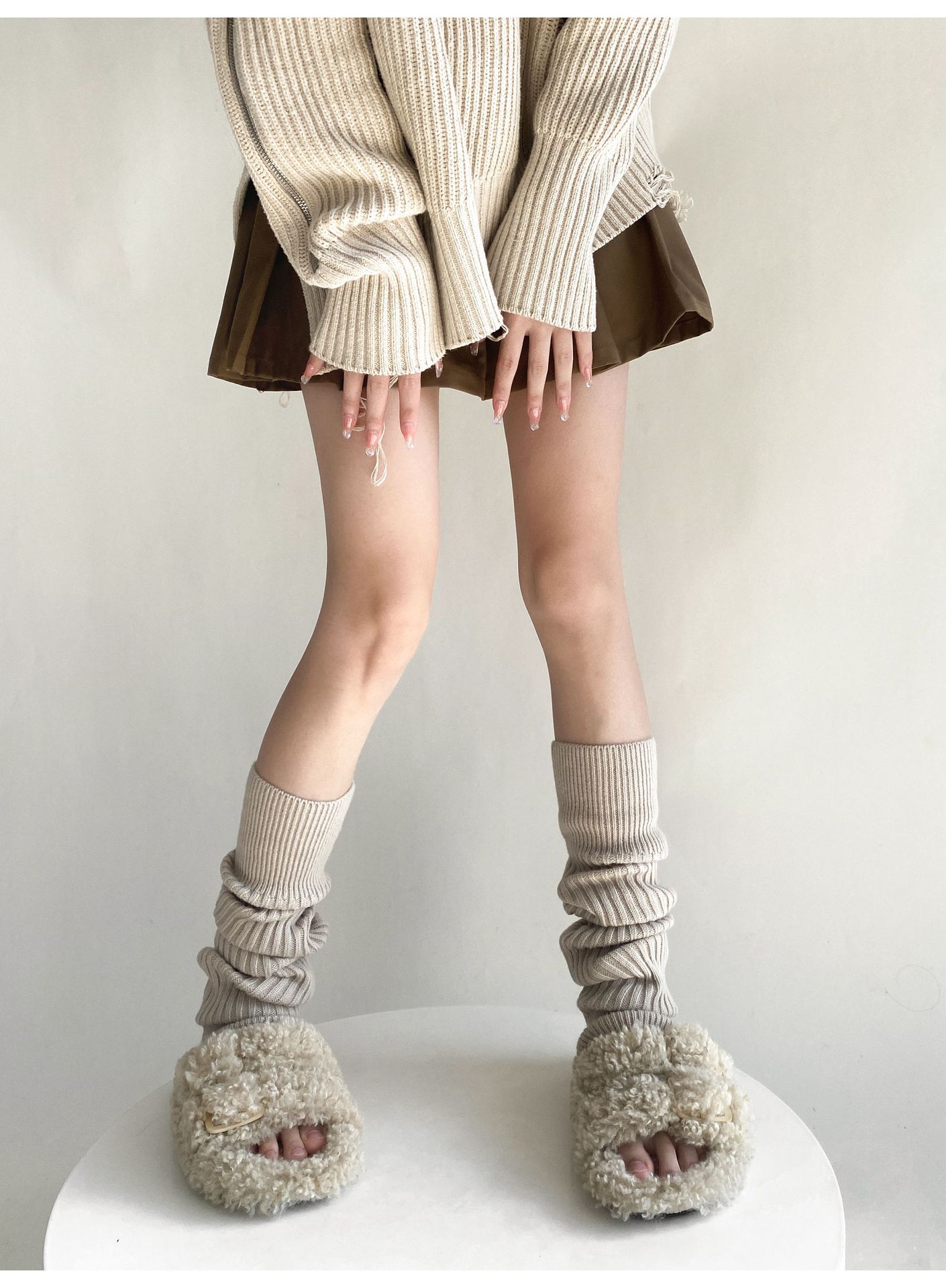 가을과 겨울 솔리드 컬러 마일러 스타일 발 양말 세트 간단한 올 매치 힙 다리 세트 무릎 패드 무릎 부츠 세트 따뜻한 발 커버