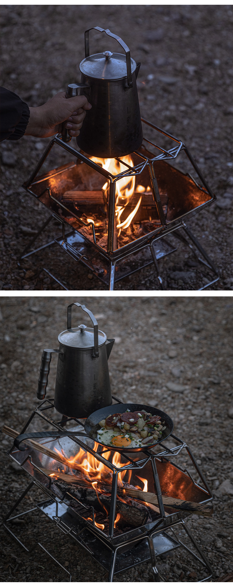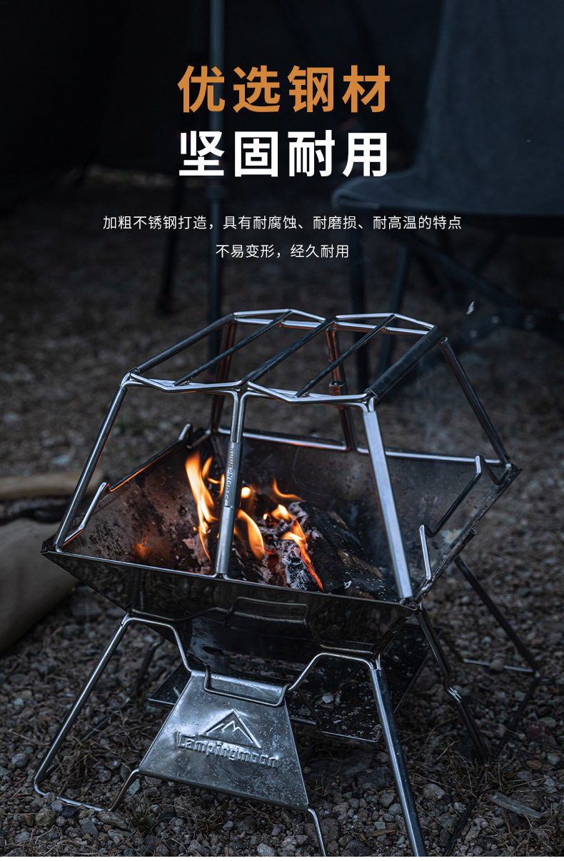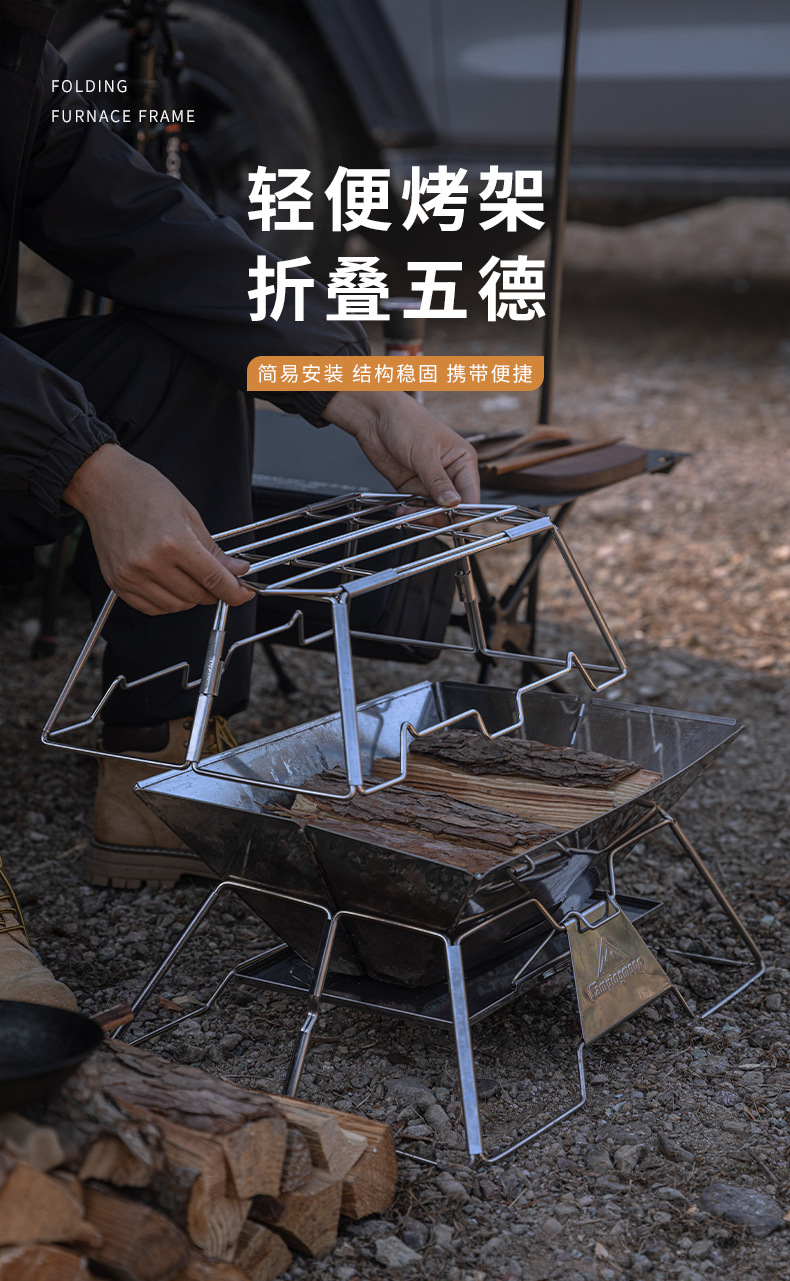 코만 MT-3-ST 야외 피크닉 스테인레스 스틸 접이식 휴대용 목재 오븐 브래킷 캠핑 화재 테이블 냄비