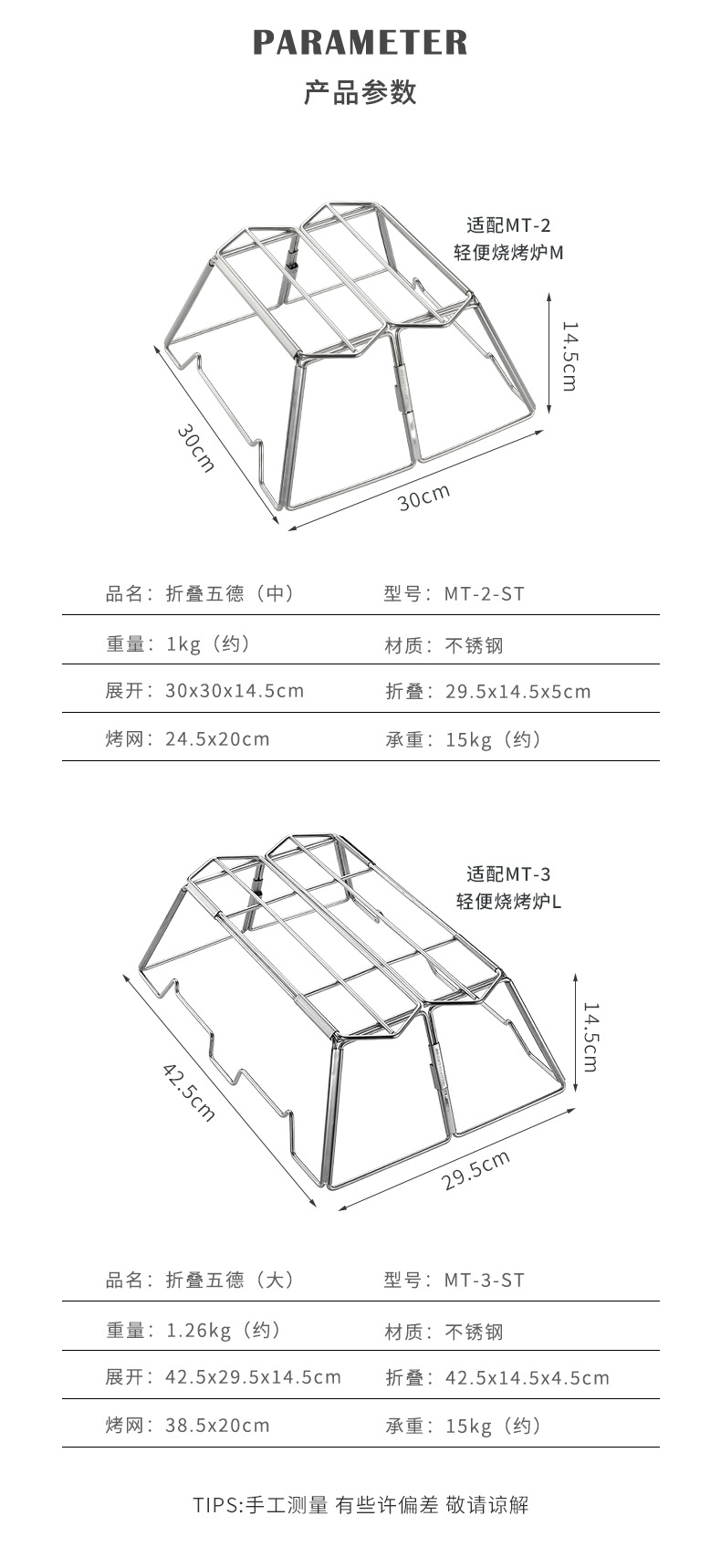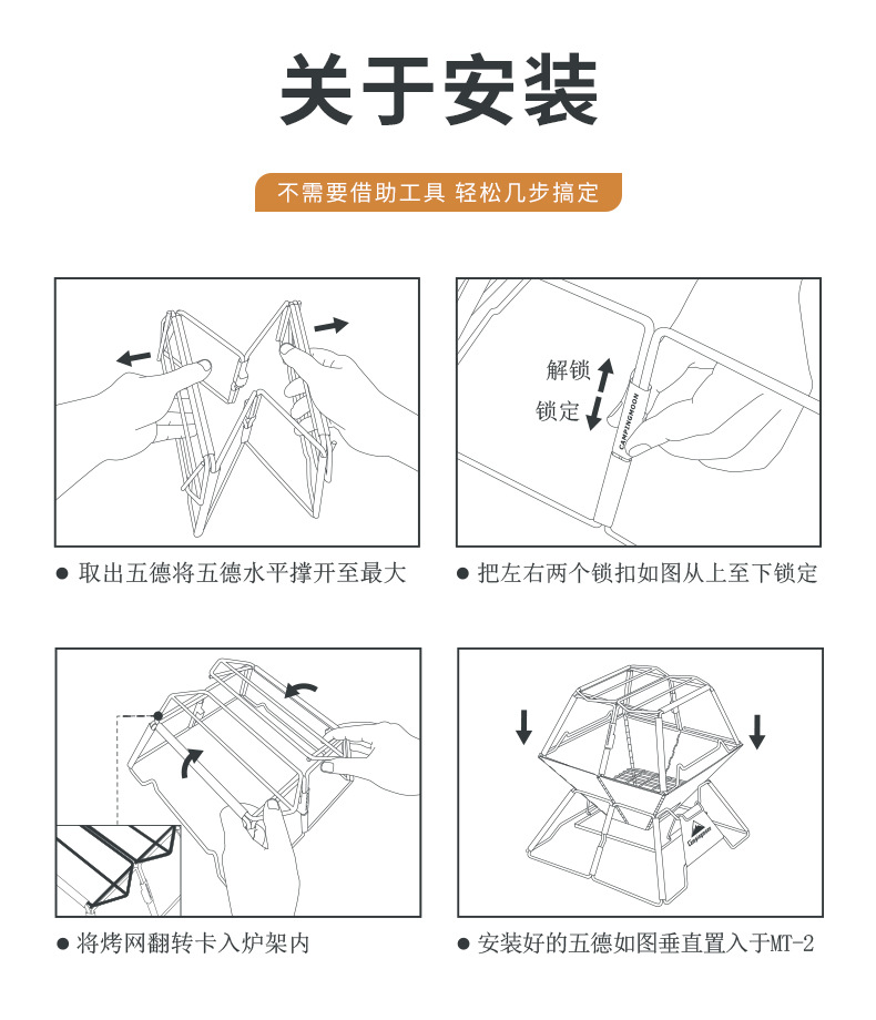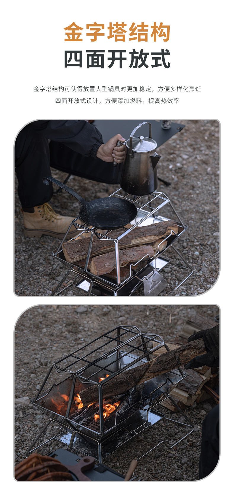 코만 MT-3-ST 야외 피크닉 스테인레스 스틸 접이식 휴대용 목재 오븐 브래킷 캠핑 화재 테이블 냄비