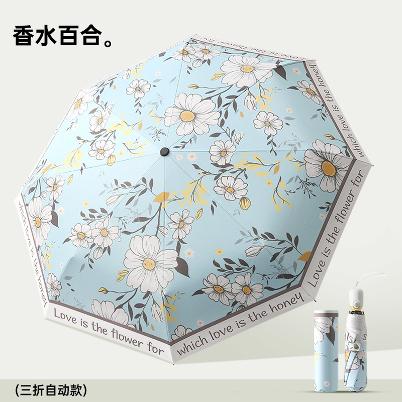 • 자동 우산 오리 달걀 머리 검은 접착제 직물 디지털 인쇄-향수 백합
