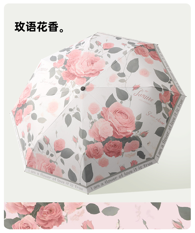 • 자동 우산 오리 달걀 머리 검은 접착제 직물 디지털 인쇄-장미 언어 꽃