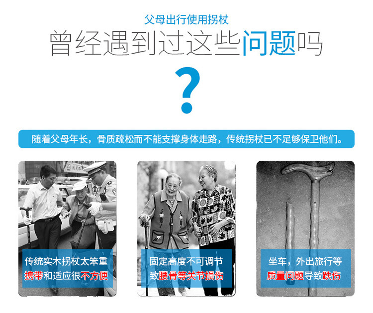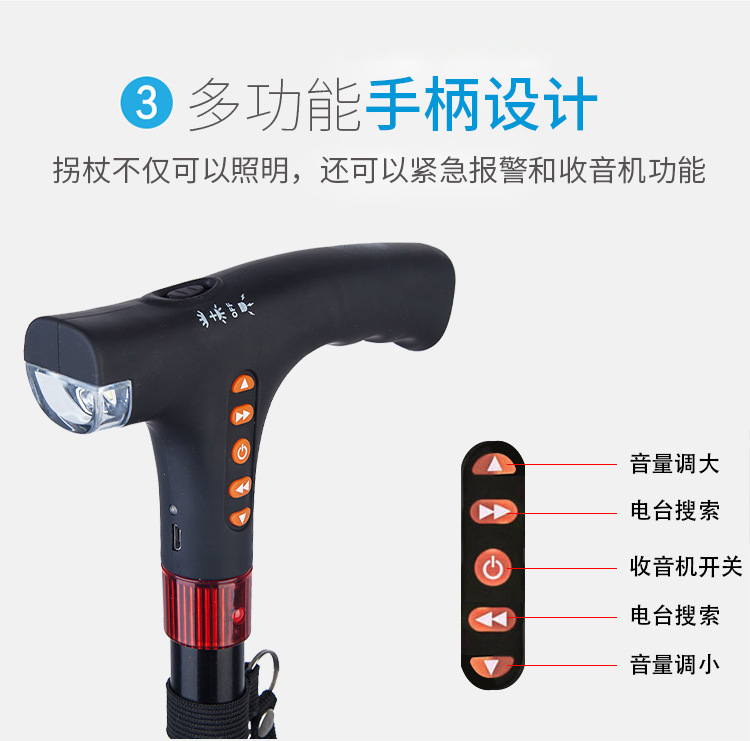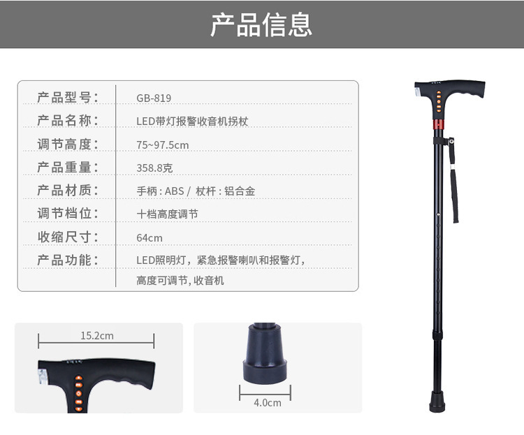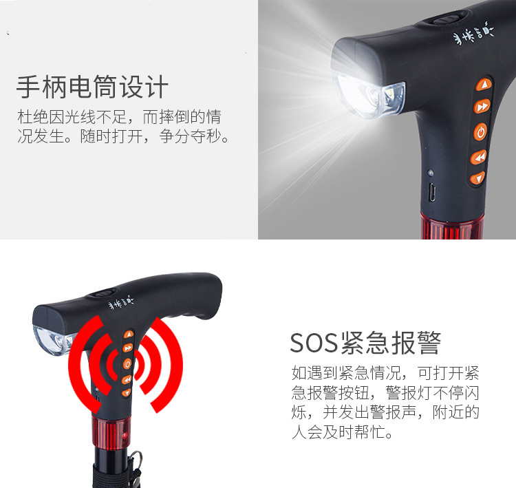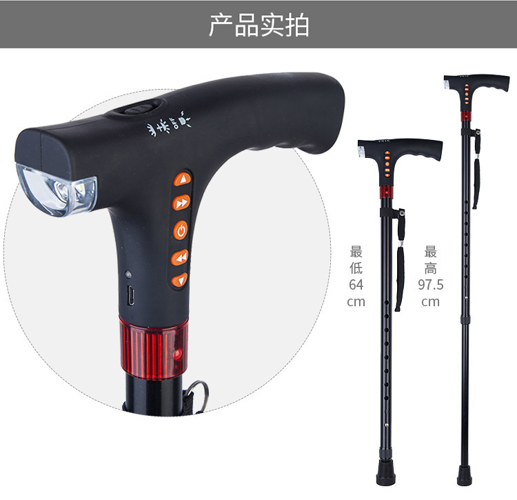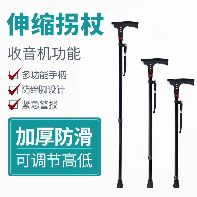 노인 똑똑한 목발 지팡이를 위한 노인 목발 다기능 LED 빛 경보 라디오 목발 개폐식 스틱