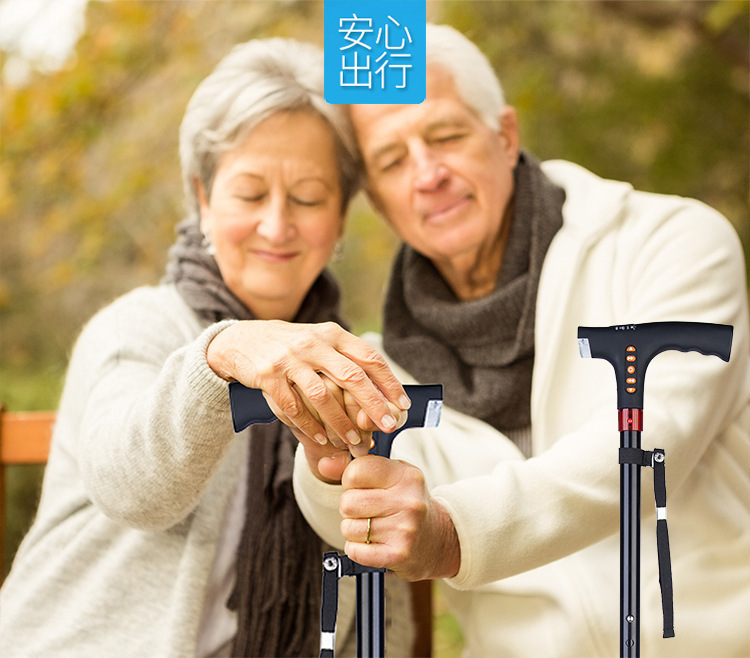 노인 똑똑한 목발 지팡이를 위한 노인 목발 다기능 LED 빛 경보 라디오 목발 개폐식 스틱스토어 가기