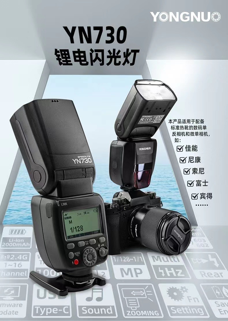 Canon Nikon Fuji Sony GM에 적합한 Yongnuo YN730 최고 리튬 배터리 핫 슈 플래시 충전스토어 가기