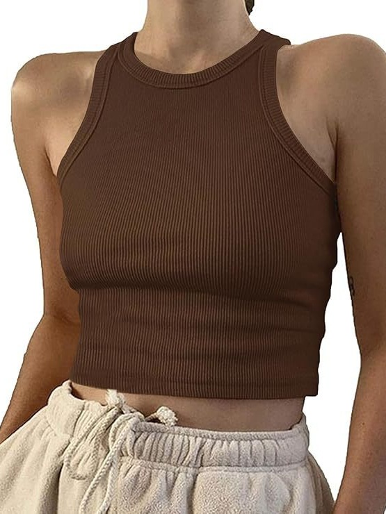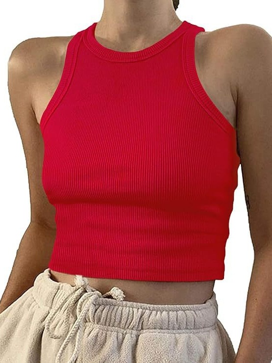 2024 Amazon AliExpress 국경 유럽과 미국 여성의 봄과 여름 짧은 단색 실 민소매 티셔츠 조끼스토어 가기