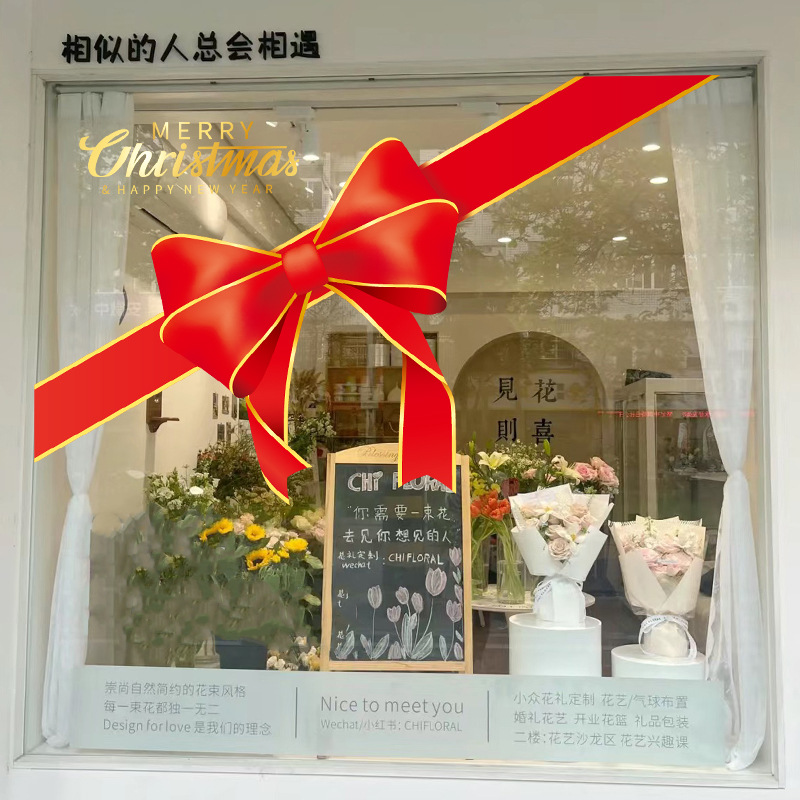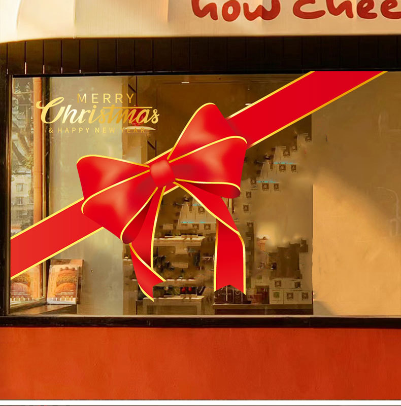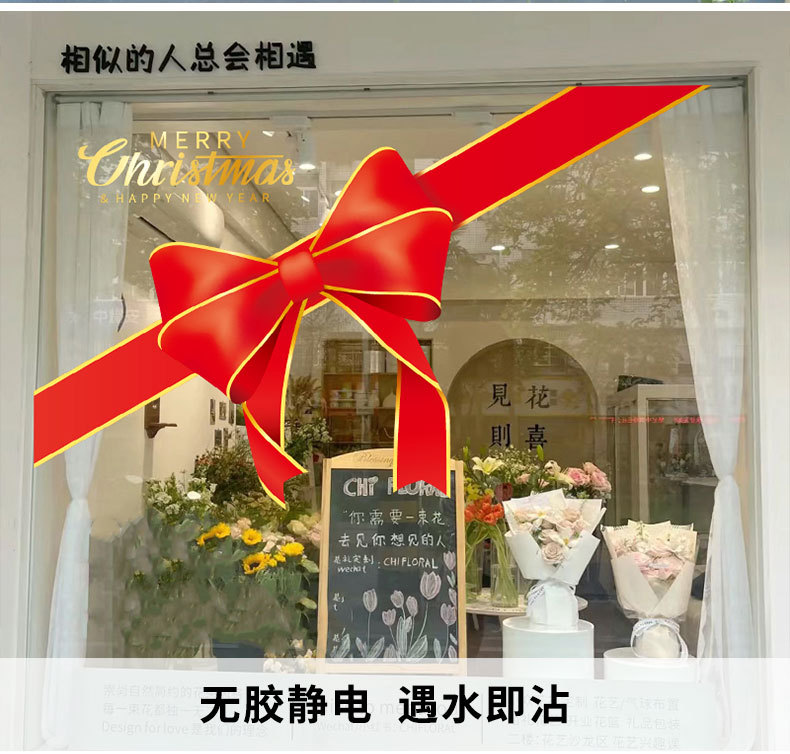 크리스마스 상점 레이아웃 창 꽃 2024 크리스마스 의류 매장 우유 차 가게 커피 숍 창 활 정적 스티커스토어 가기