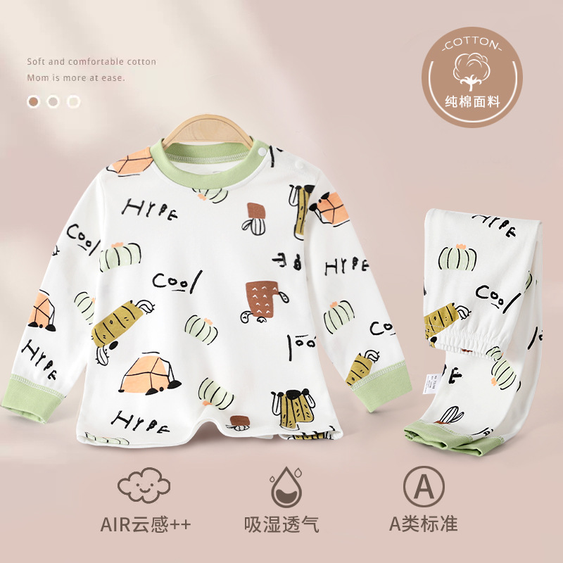 면화 가을과 겨울 아기 가을 바지면 따뜻한 잠옷 어린이 밑바닥 속옷 패션을 세트 아기 가을 옷
