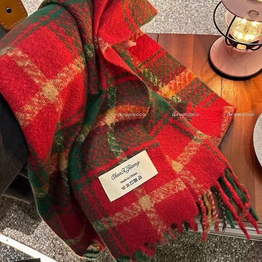 크리스마스 스카프 모방 캐시미어 올 매치 빅 레드 격자 무늬 목도리 레인보우 겨울 스카프 올 매치 유행 새해 선물스토어 가기