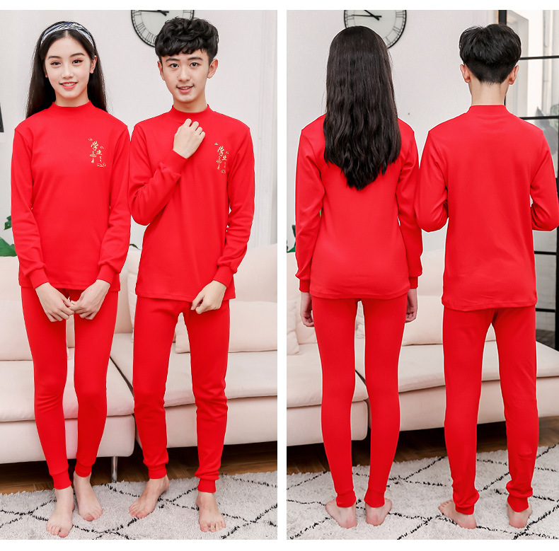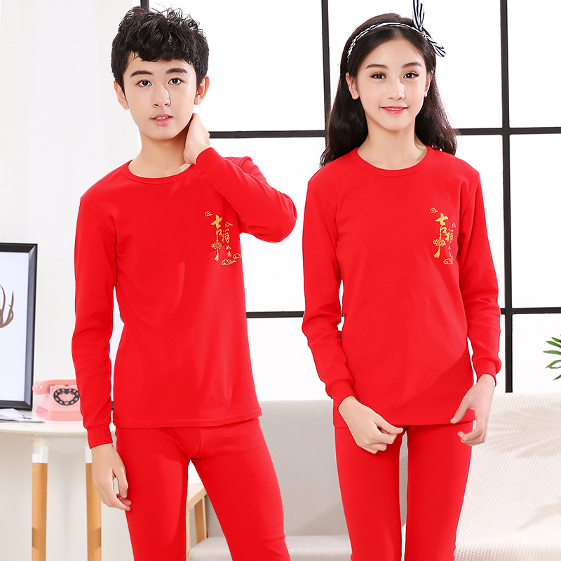 중대형 어린이 레드 드래곤 년 가을 옷 긴 바지 세트 코튼 고등학생 청소년 면화 남녀 출생 속옷