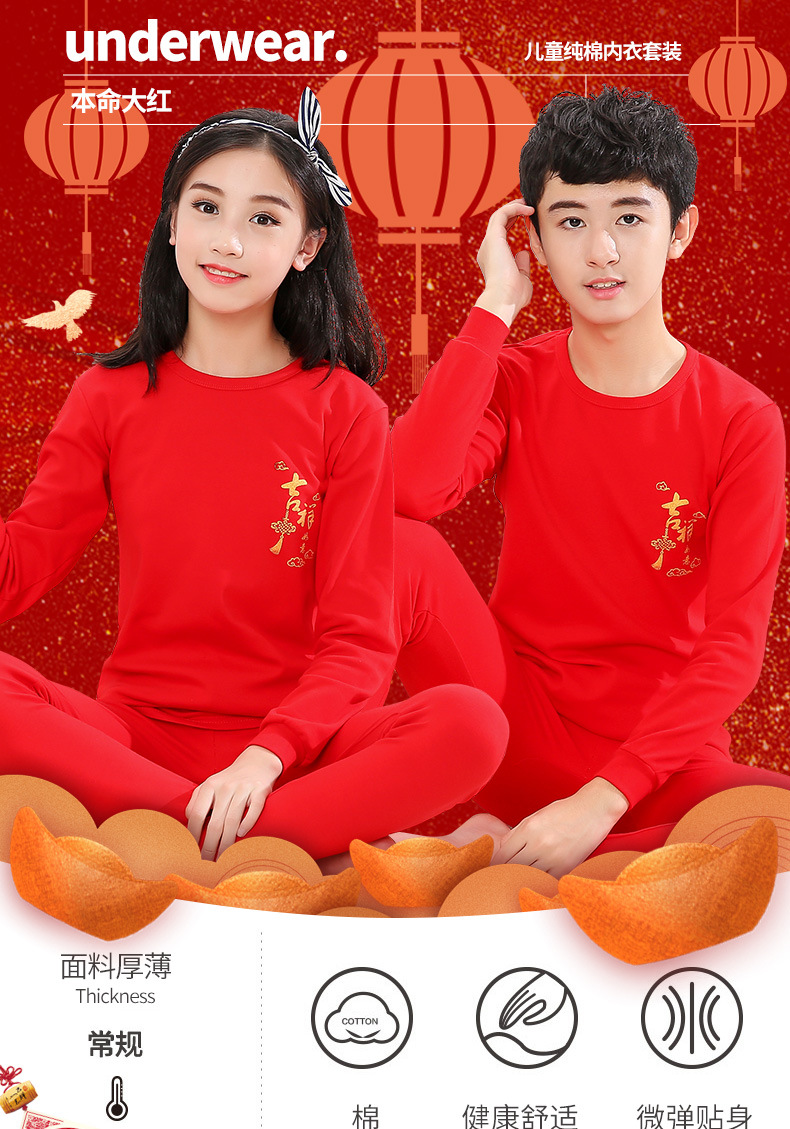 중대형 어린이 레드 드래곤 년 가을 옷 긴 바지 세트 코튼 고등학생 청소년 면화 남녀 출생 속옷스토어 가기