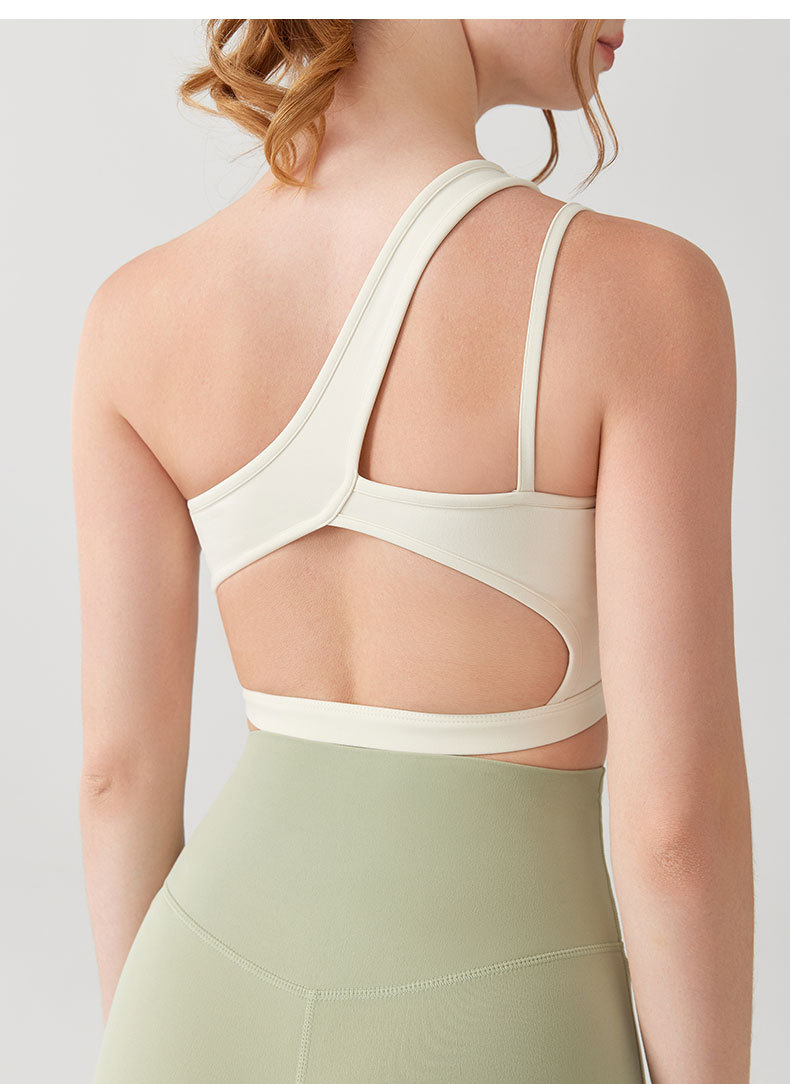비스듬한 어깨 충격 방지 요가 브래지어 구름 감각 아름다운 등 스포츠 속옷 불규칙한 어깨 끈 달리기 피트니스 조끼 탑