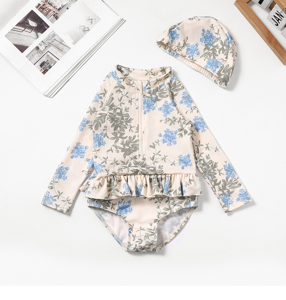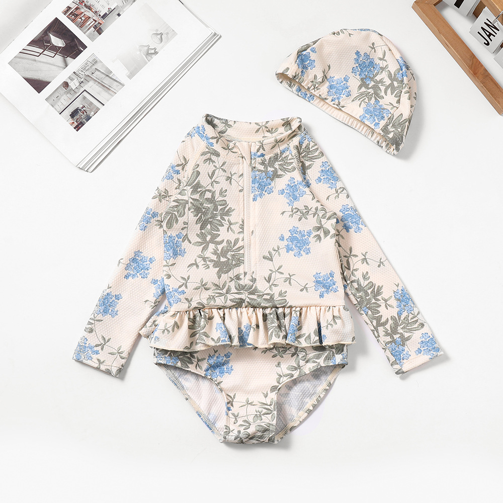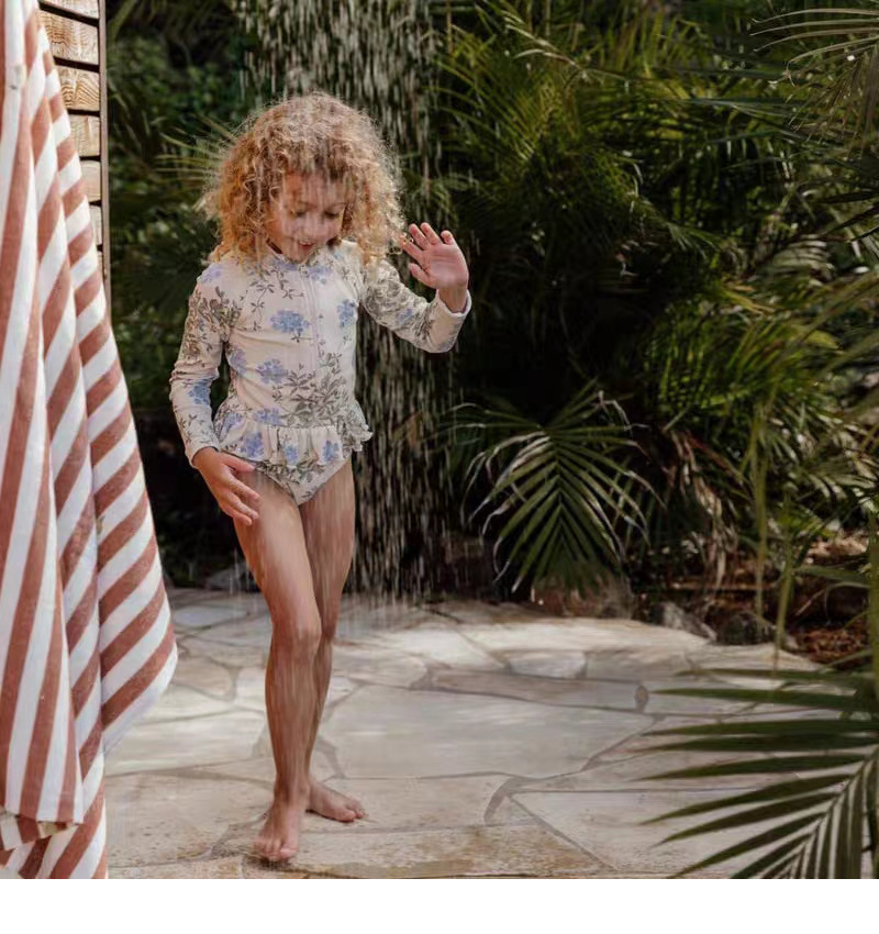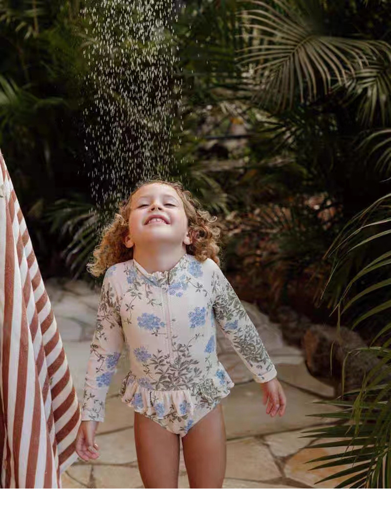 국경 간 소녀 수영복 귀여운 꽃 레이스 원피스 수영복 소녀 아기 온천 수영 세트 원피스 배달