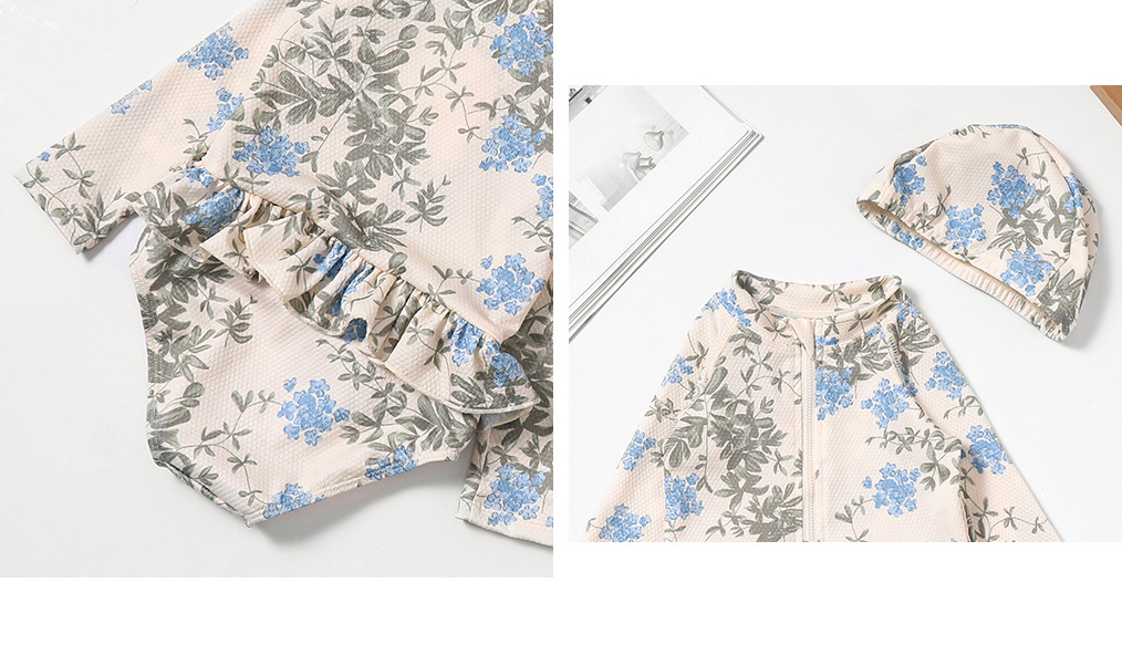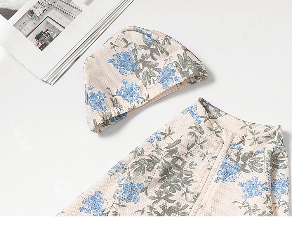 • 블루 플라워 수영복 (수영 모자 포함)