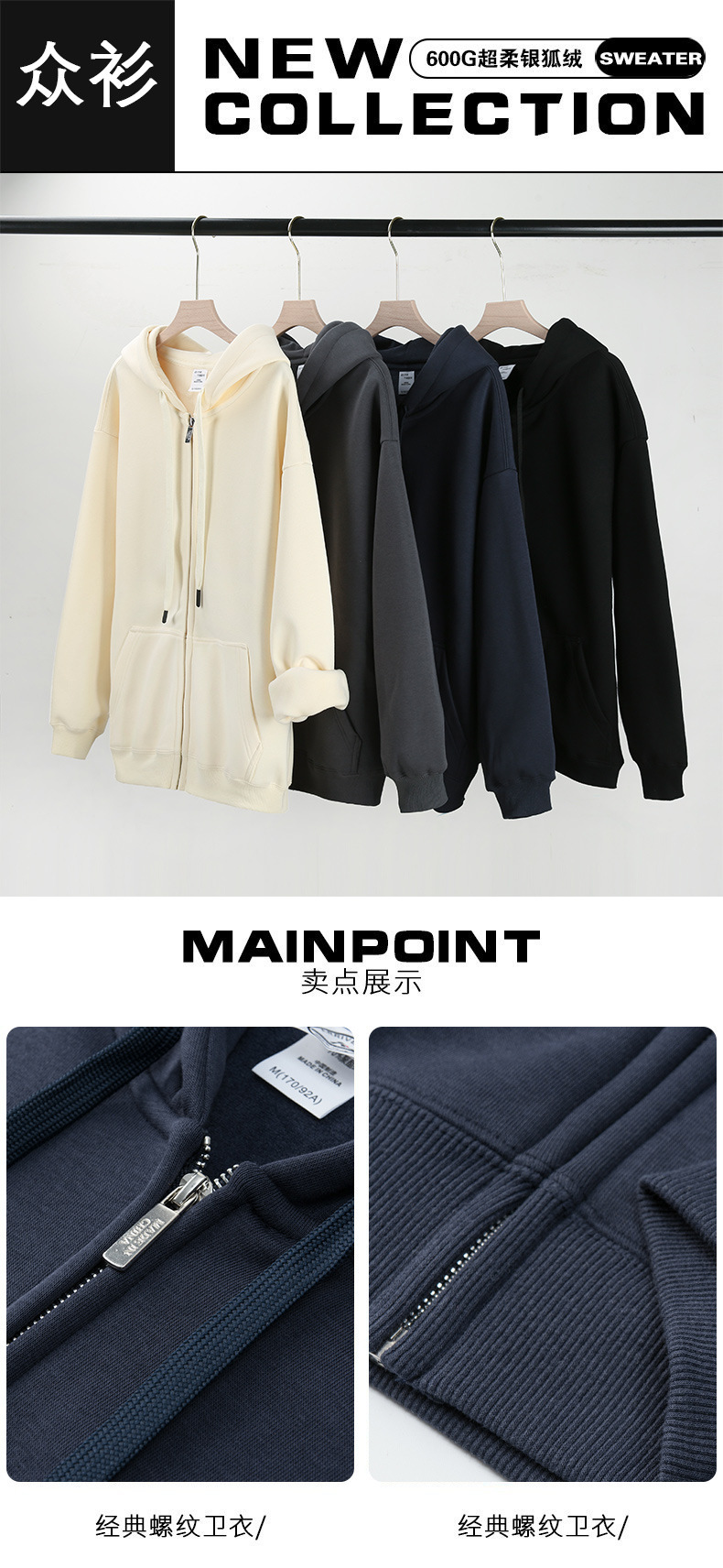 600 그램의 무거운 슈퍼 소프트 실버 여우 벨벳 후드 금속 지퍼 스웨터 남성 벨벳 따뜻한 카디건 코트 여성 패션 브랜드스토어 가기