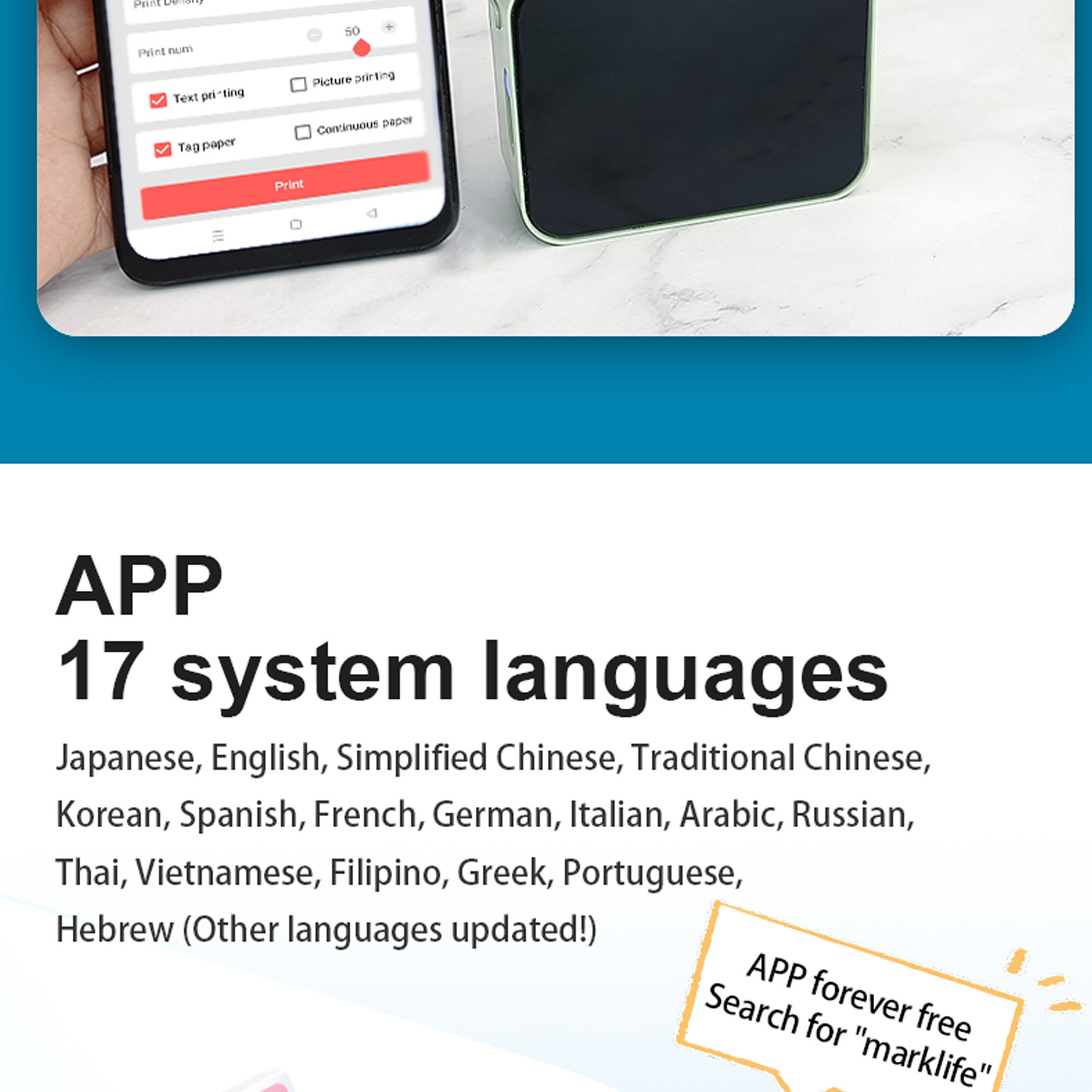 • 无需墨水 - 内置锂电池 - 充电 - 手机蓝牙连接