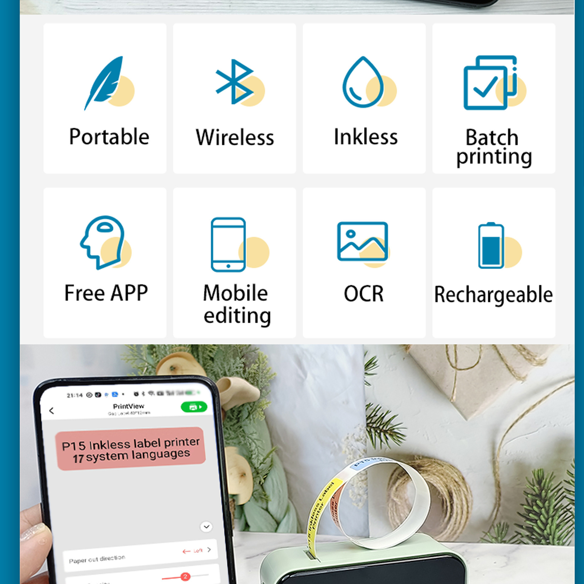 • 注意:打印机没有任何粉末,因为P15是热敏打印机。