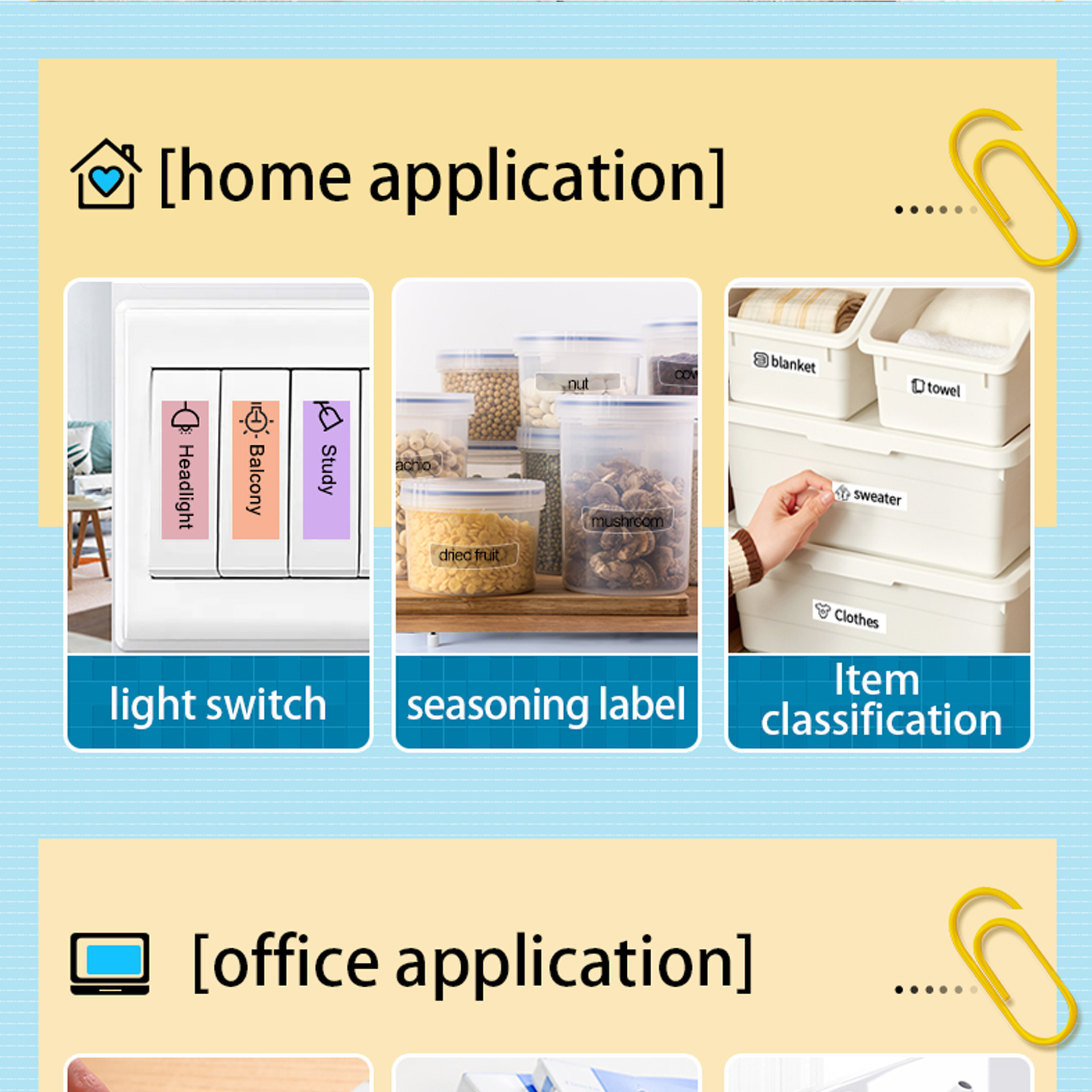 • 适用于各种场景:物品名称贴纸、价格标签、珠宝、家居收纳……