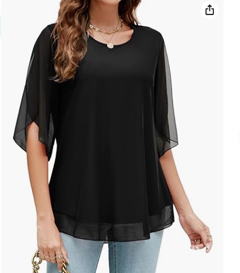 유럽과 미국의 대외 무역 여성 의류 인기 여름 캐주얼 느슨한 더블 레이어 단색 풀오버 벨 소매 짧은 쉬폰 셔츠스토어 가기