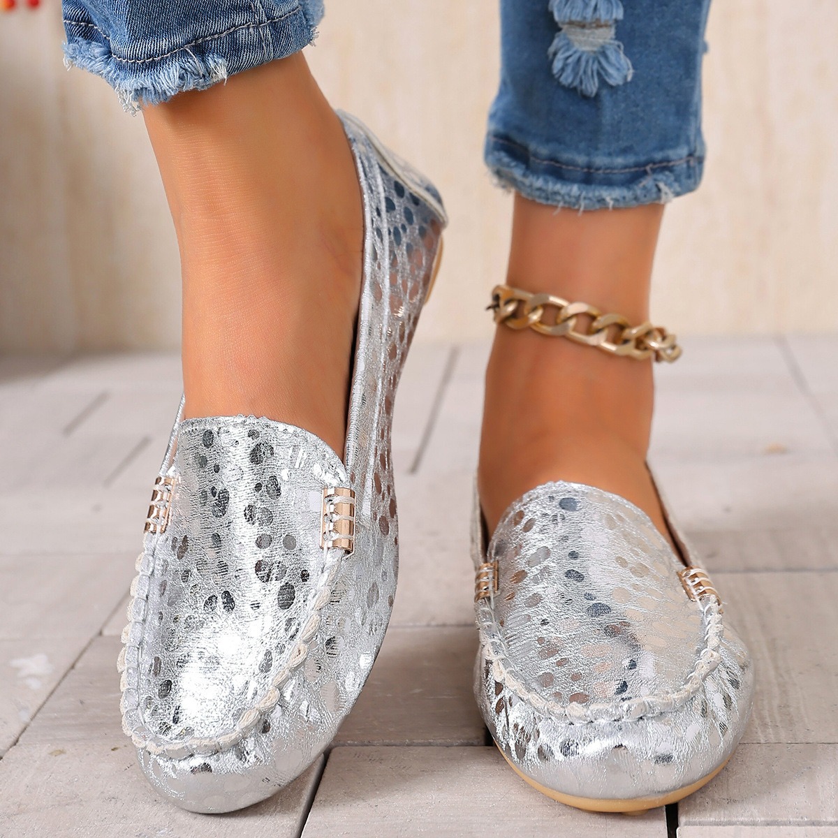 2024 봄과 여름 새로운 여성 신발 캐주얼 플랫 토드 둥근 발가락 얕은 입 여성 신발 플러스 사이즈 대외 무역 유럽과 미국 여성 신발스토어 가기