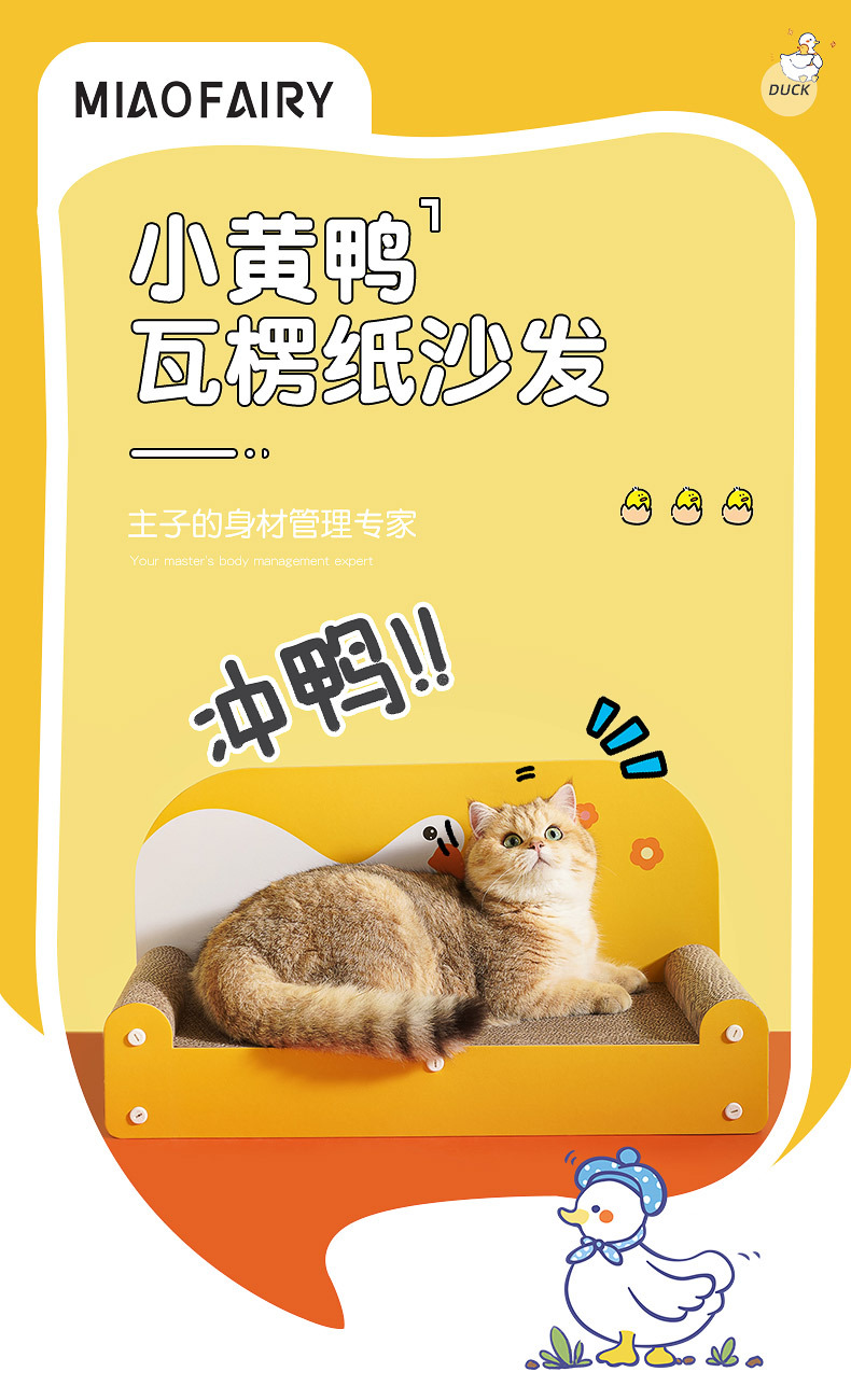 • 노란 오리 만화 골판지 고양이 스크래치 보드