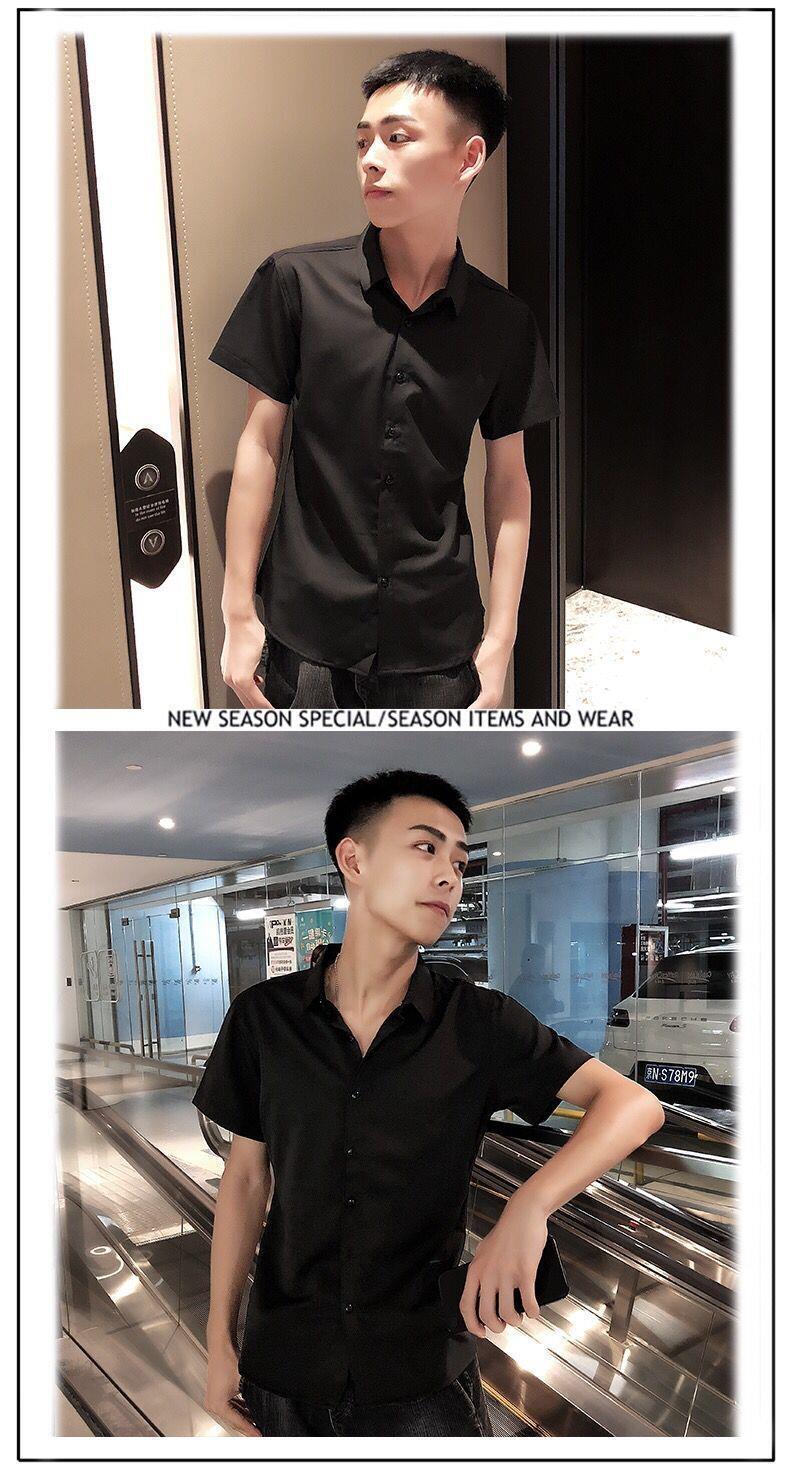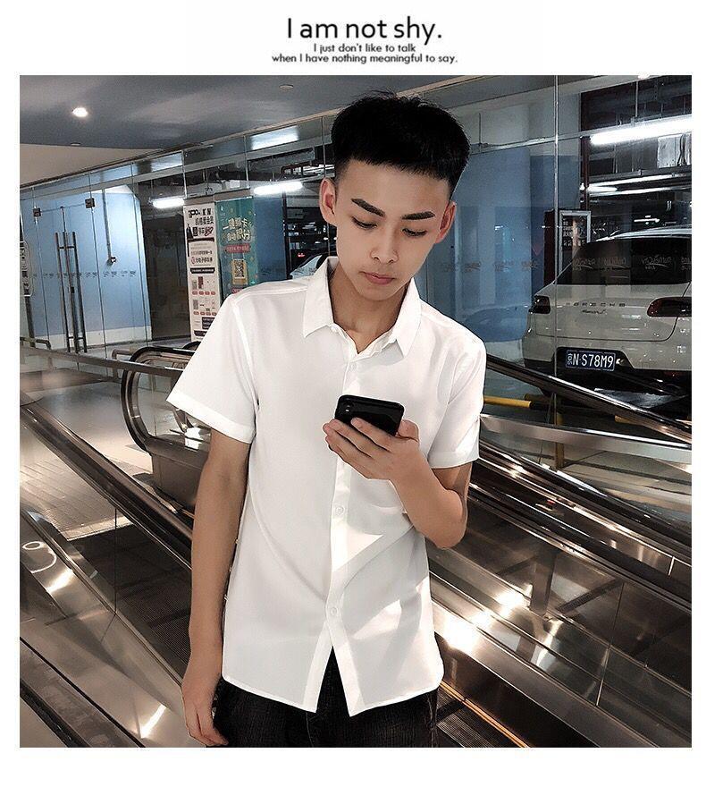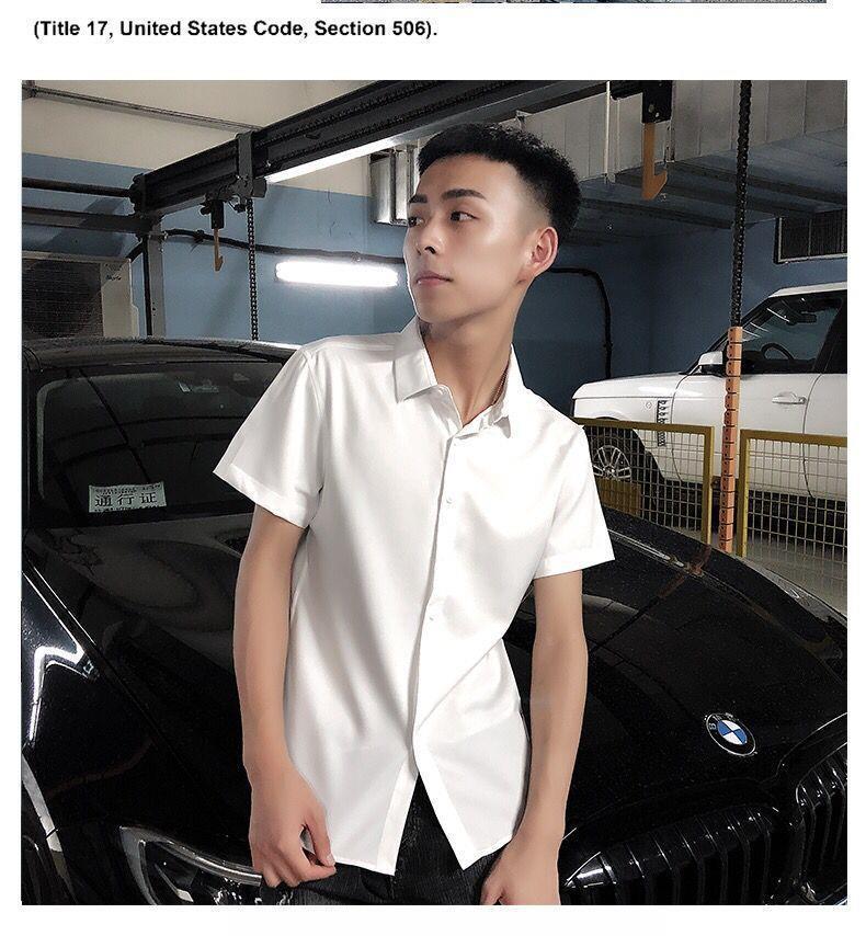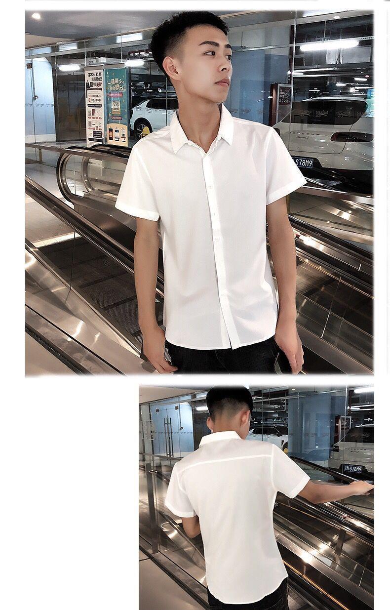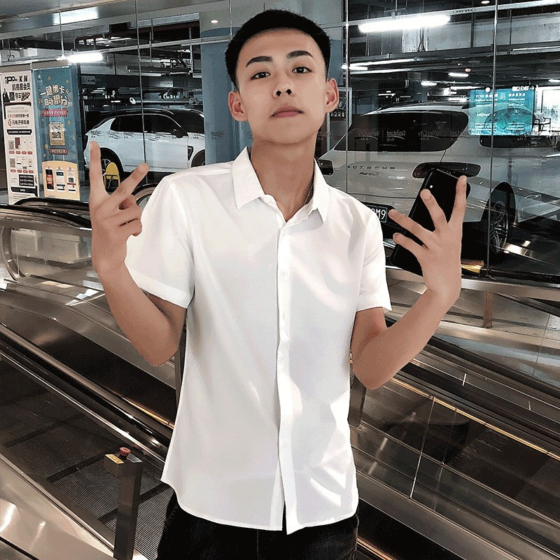 여름 인터넷 축하 같은 스타일 영적 남자 스트레치 반팔 셔츠 슬림 핏 트렌디 리퍼 핸섬 스몰 사이즈 얇은 흰색 셔츠 남성용스토어 가기