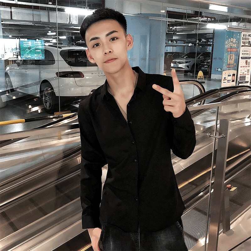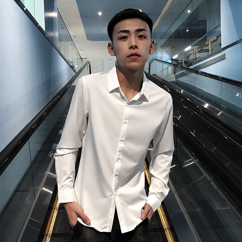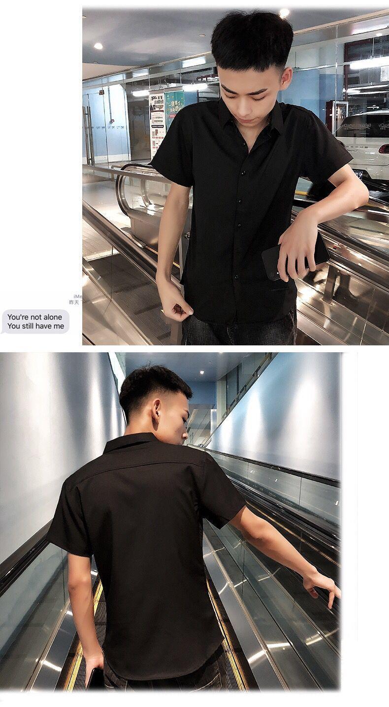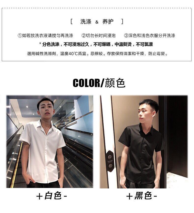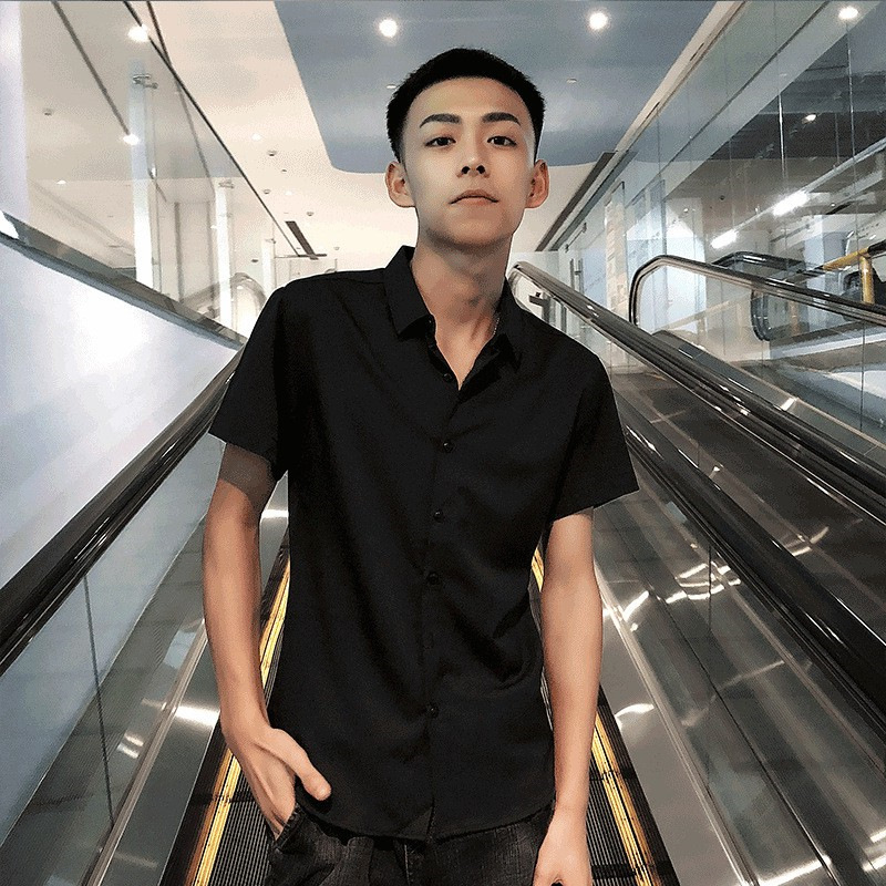 여름 인터넷 축하 같은 스타일 영적 남자 스트레치 반팔 셔츠 슬림 핏 트렌디 리퍼 핸섬 스몰 사이즈 얇은 흰색 셔츠 남성용스토어 가기