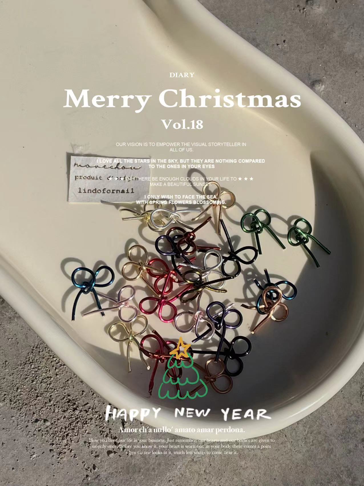 한국 스타일 인기 핸드 트위스트 보우 슈퍼 두꺼운 매니큐어 웨어러블 네일 diy 새해 크리스마스 액세서리 혼합 색상 소재스토어 가기