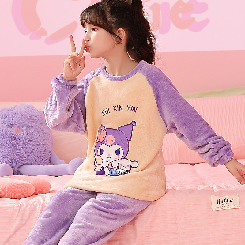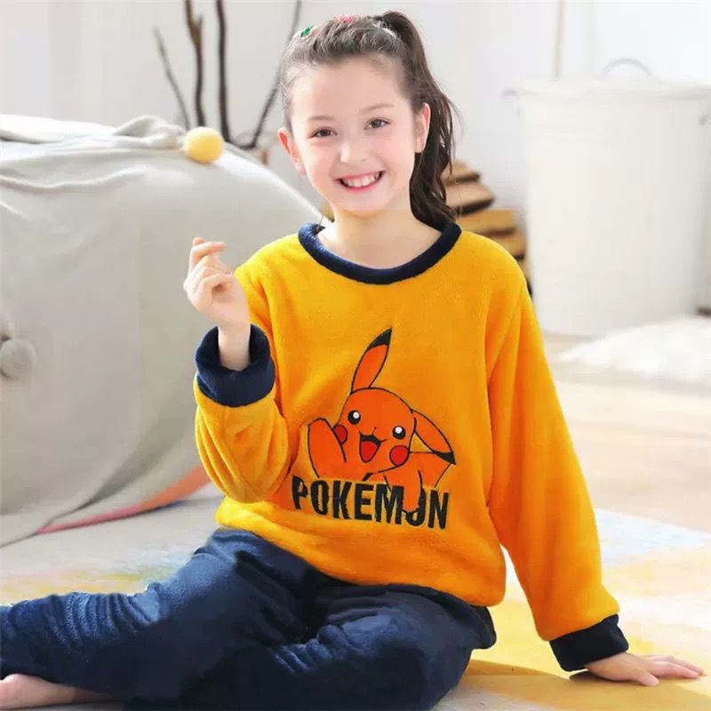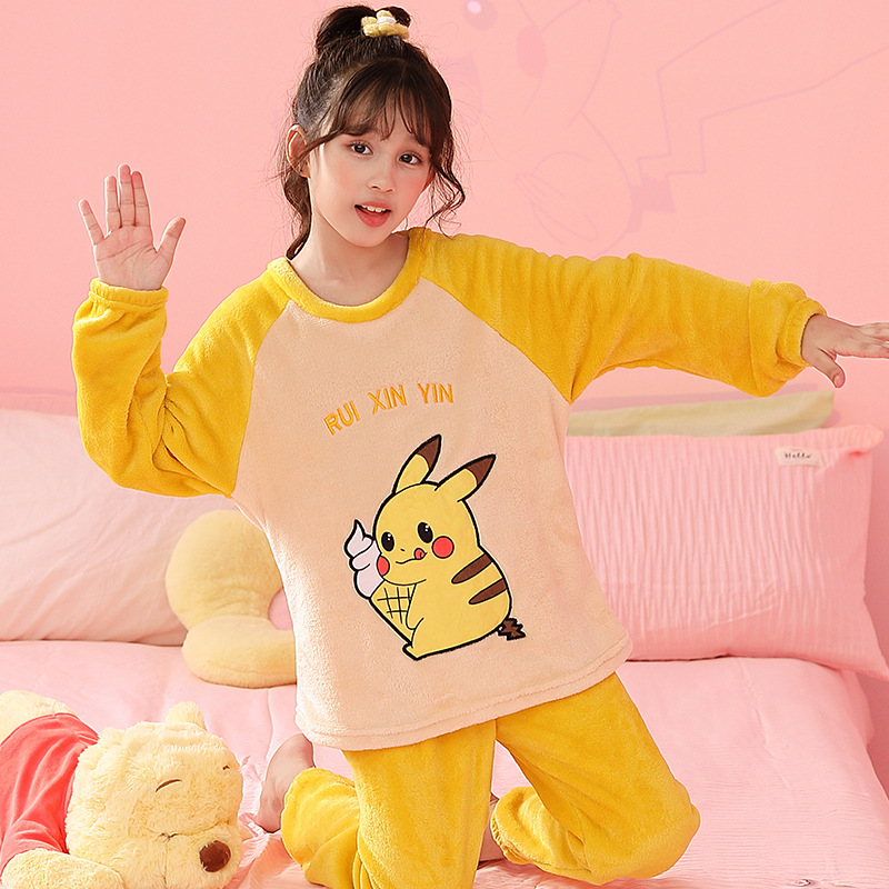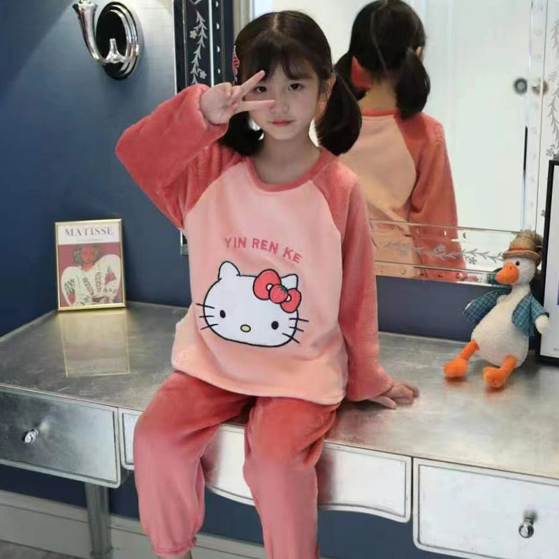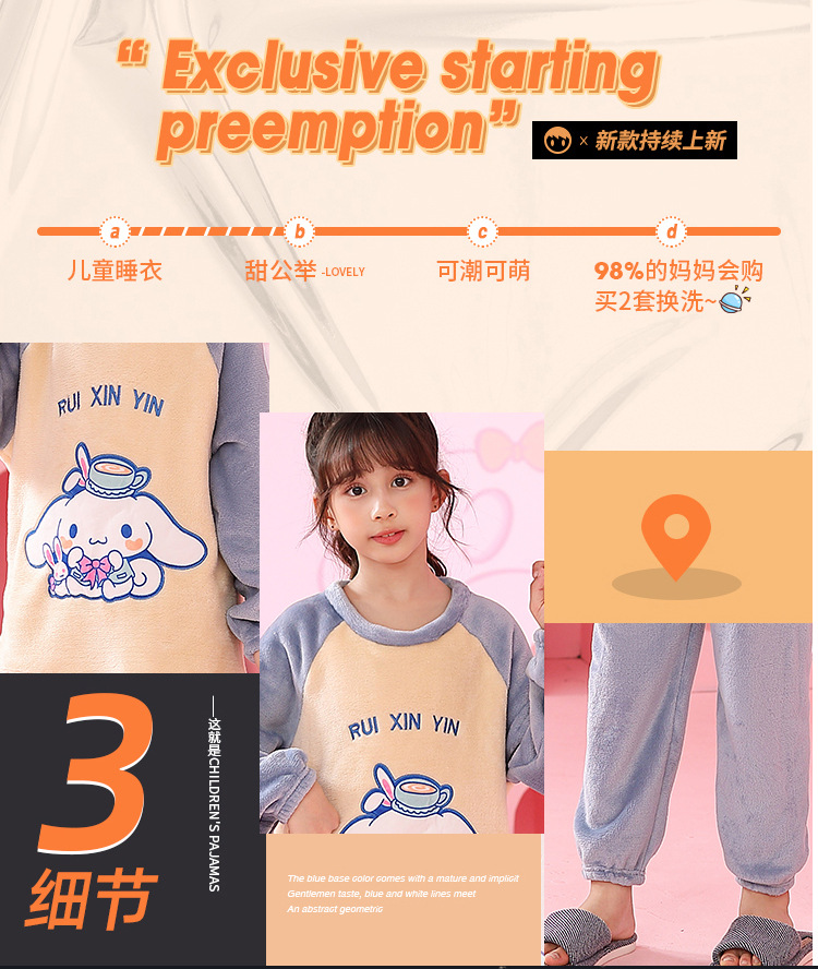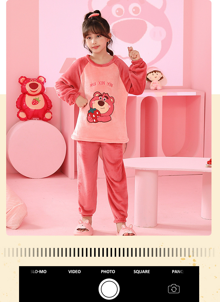 플란넬 홈 옷 여아 잠옷 어린이 산호 양털 세트 홈 옷 중년 어린이 소녀 소년 만화스토어 가기