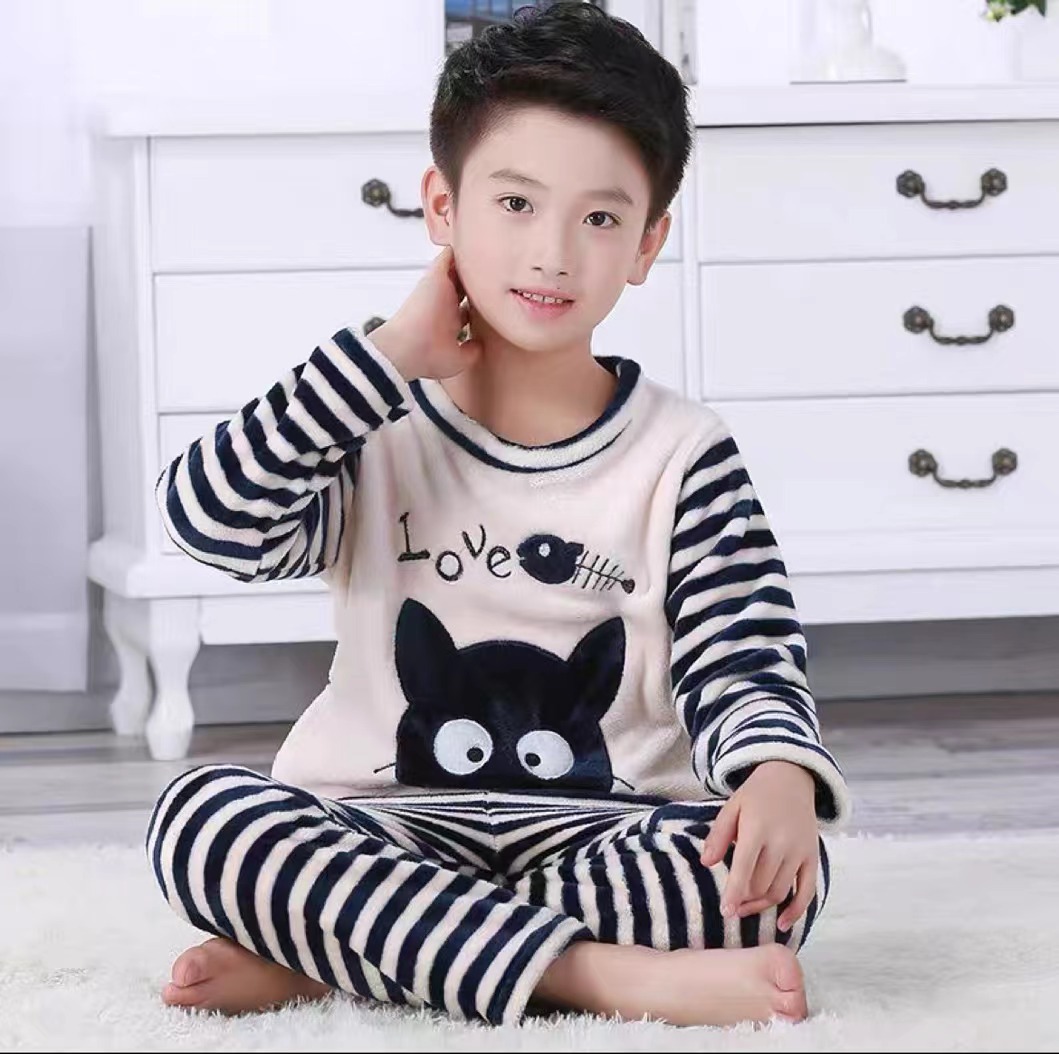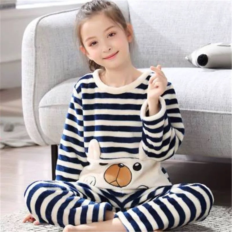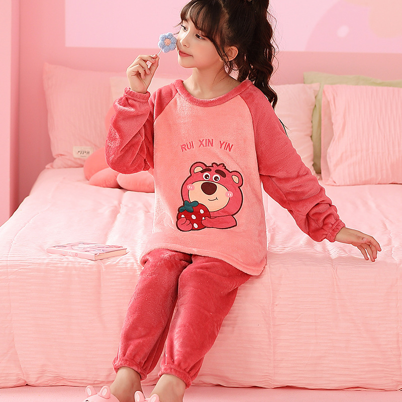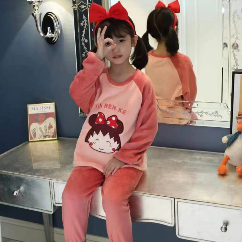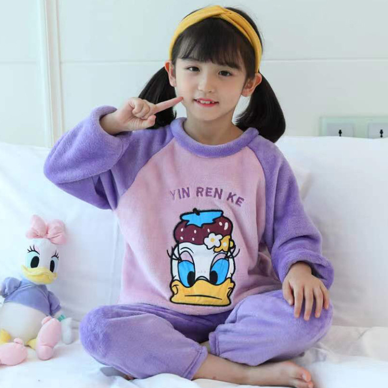플란넬 홈 옷 여아 잠옷 어린이 산호 양털 세트 홈 옷 중년 어린이 소녀 소년 만화