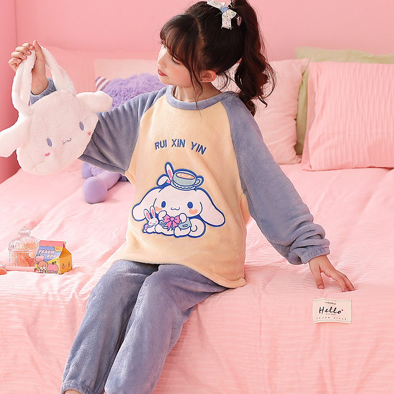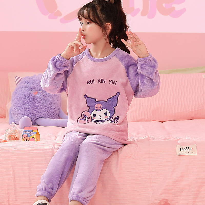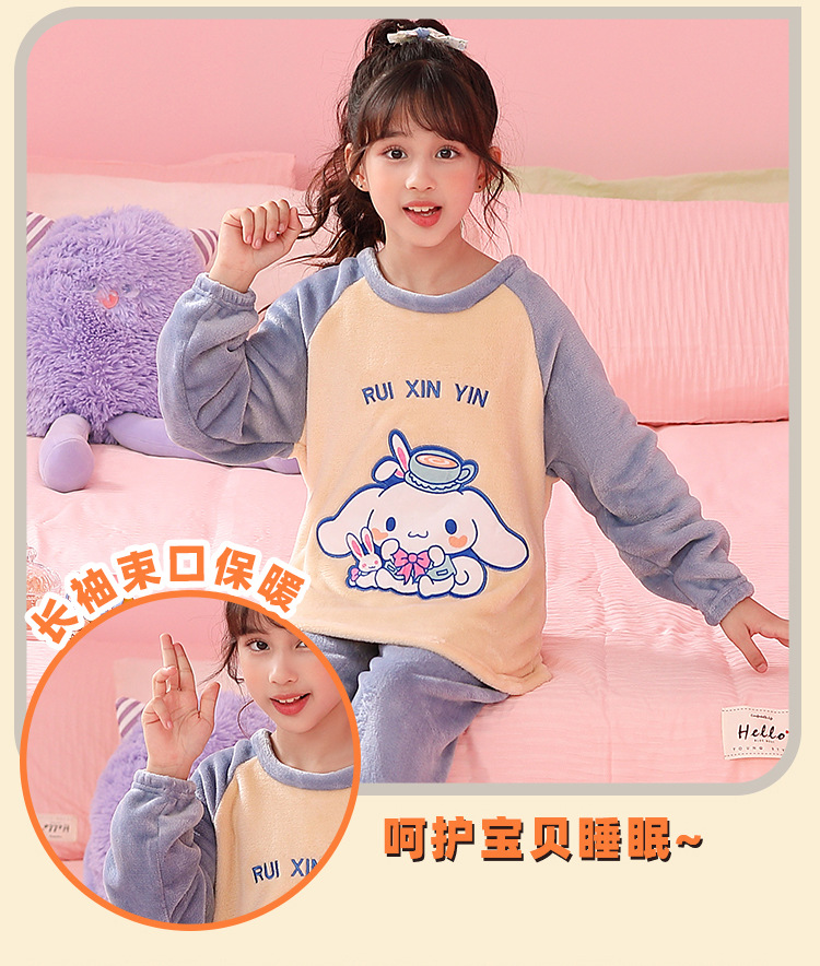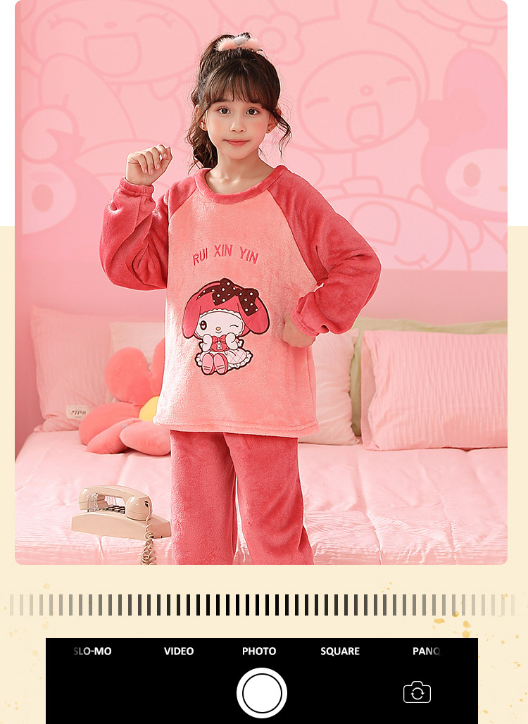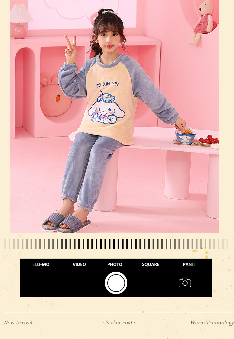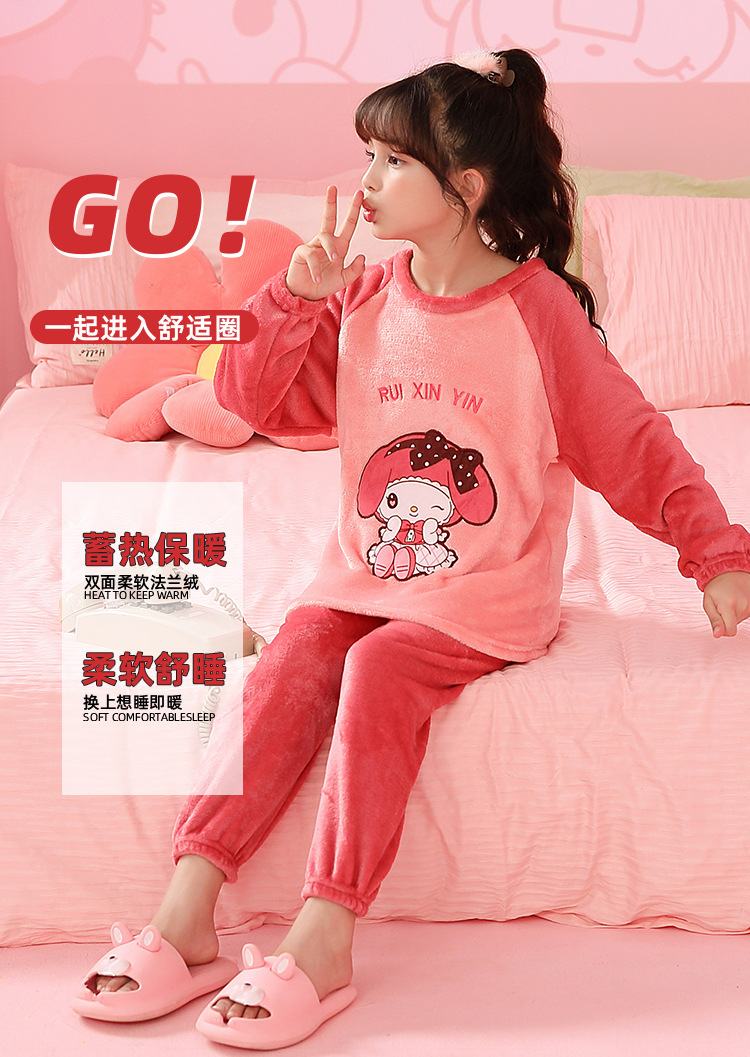 플란넬 홈 옷 여아 잠옷 어린이 산호 양털 세트 홈 옷 중년 어린이 소녀 소년 만화