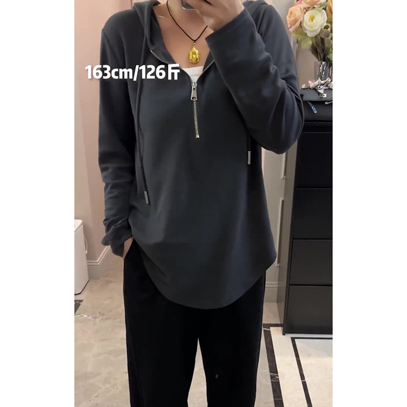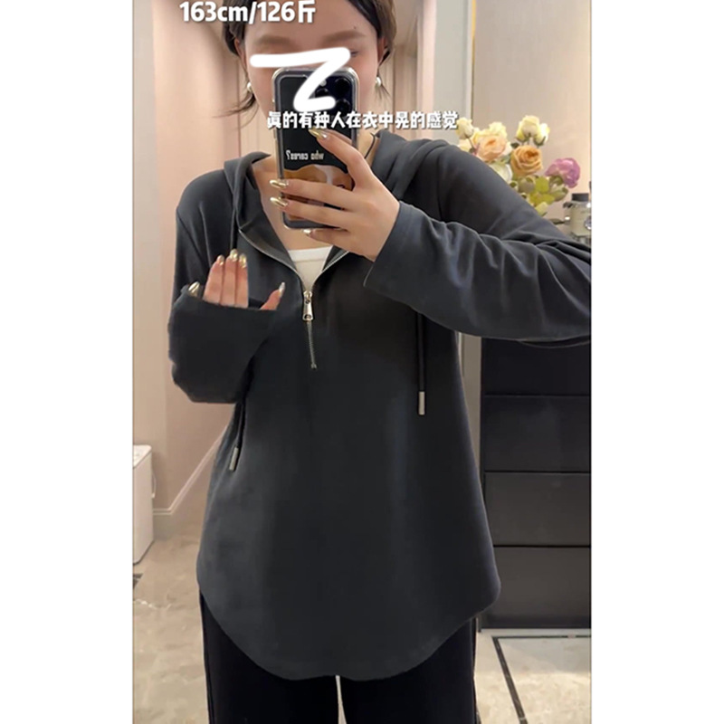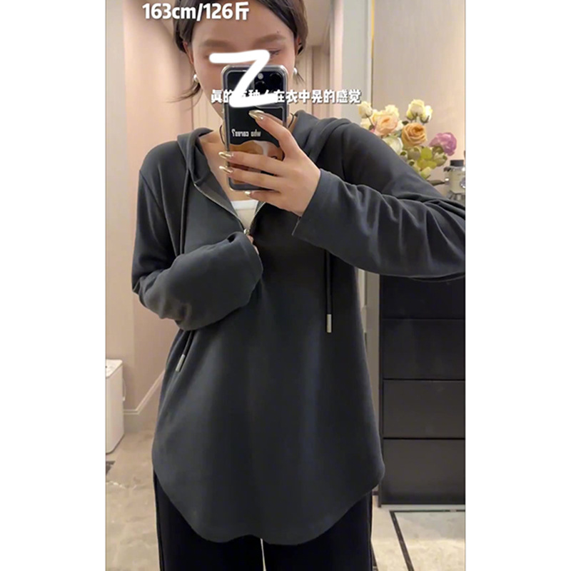 느슨한 중간 길이의 겉옷 후드 바닥 셔츠 여성의 가을과 겨울 패션 모두 어울리는 슬리밍 벨벳 따뜻한 풀오버 탑스토어 가기