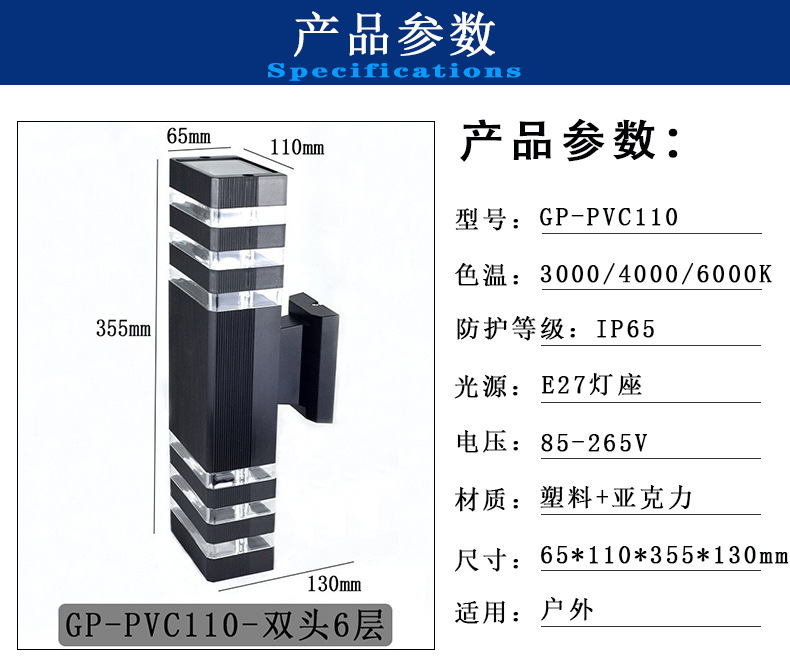 야외 벽 램프 현대 간단한 상부 및 하부 발광 안뜰 램프 문 문 방수 벽 교수형 램프 플라스틱 쉘 직사각형