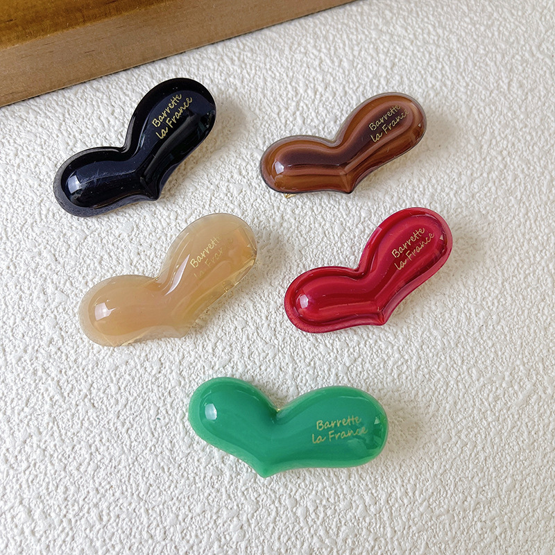 프랑스 스타일 4mm 두께의 아세테이트 머리핀 비대칭 사랑 앞머리 클립 한국 스타일 s ducbill 클립 사이드 클립 여성 머리 장식 헤어 액세서리스토어 가기