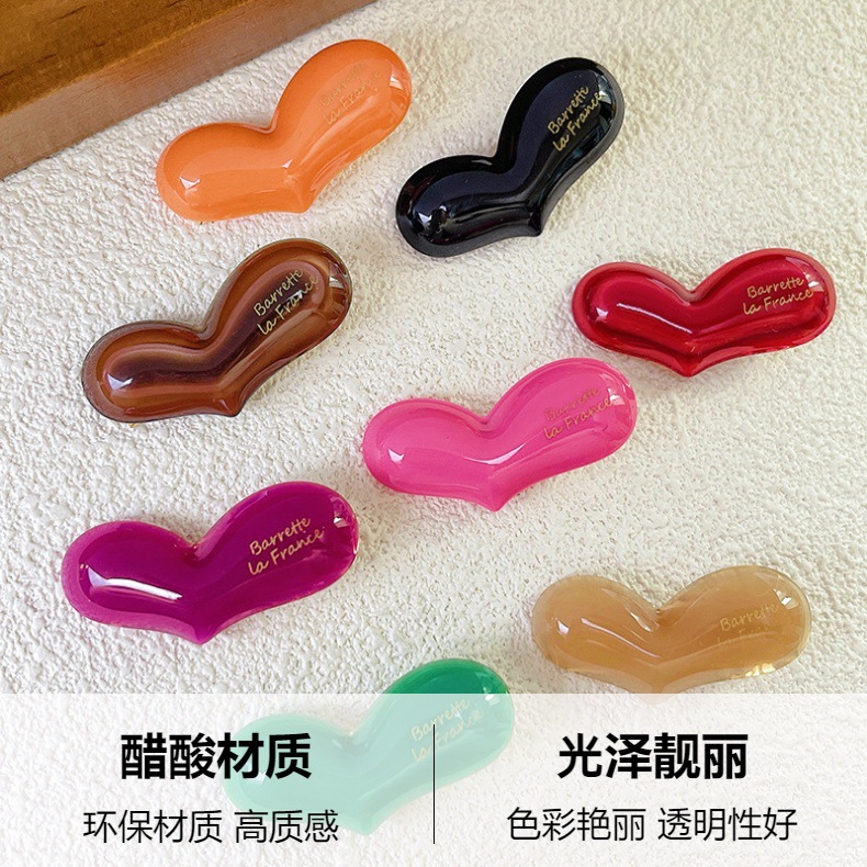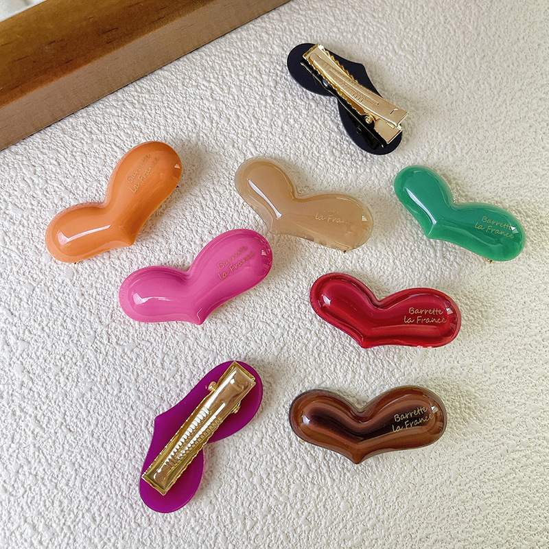 프랑스 스타일 4mm 두께의 아세테이트 머리핀 비대칭 사랑 앞머리 클립 한국 스타일 s ducbill 클립 사이드 클립 여성 머리 장식 헤어 액세서리